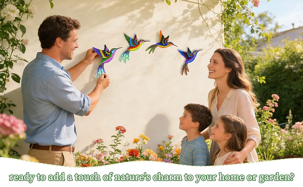 【هدية مدروسة بأنماط فريدة من نوعها】4 تصميمات مميزة تجعل هذه المجموعة هدية ذات معنى للدفء المنزلي أو أعياد الميلاد أو عيد الأم - ترمز إلى الفرح وحيوية الطبيعة. إنها ترفع من مستوى العروض الفنية في ساحة الطائر الطنان أو تقترن بديكور معدني ملون، مما يحول أي مساحة إلى واحة نابضة بالحياة مستوحاة من الطبيعة.