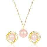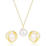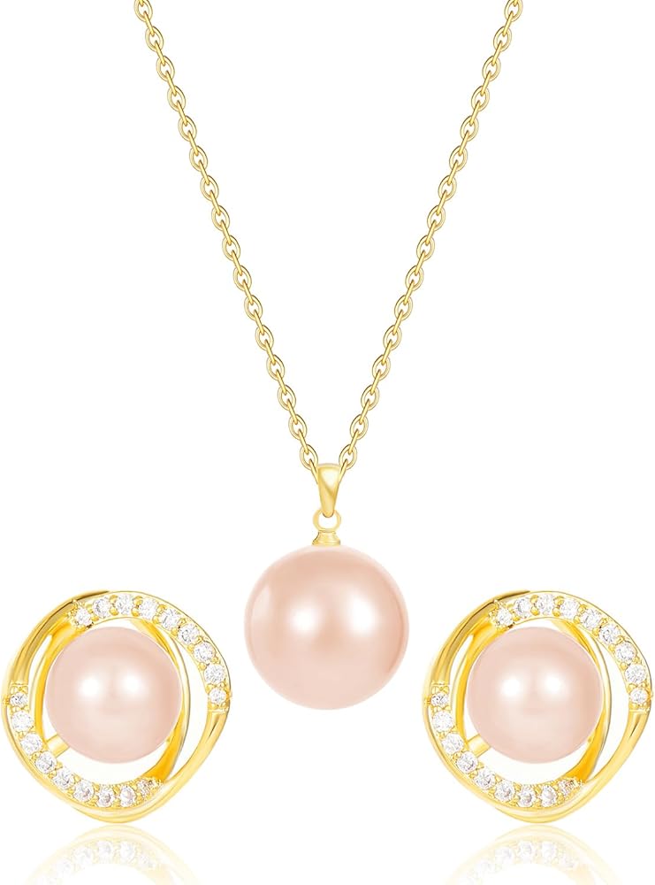مجموعة نسائية مطلية بالذهب أقراط وقلادة من الزركون اللؤلؤ المقلد، هدية مجوهرات بإبرة فضية عيار 925، طراز رائع وبسيط، مناسبة كهدية عيد ميلاد الابنة، للارتداء اليومي in Kuwait