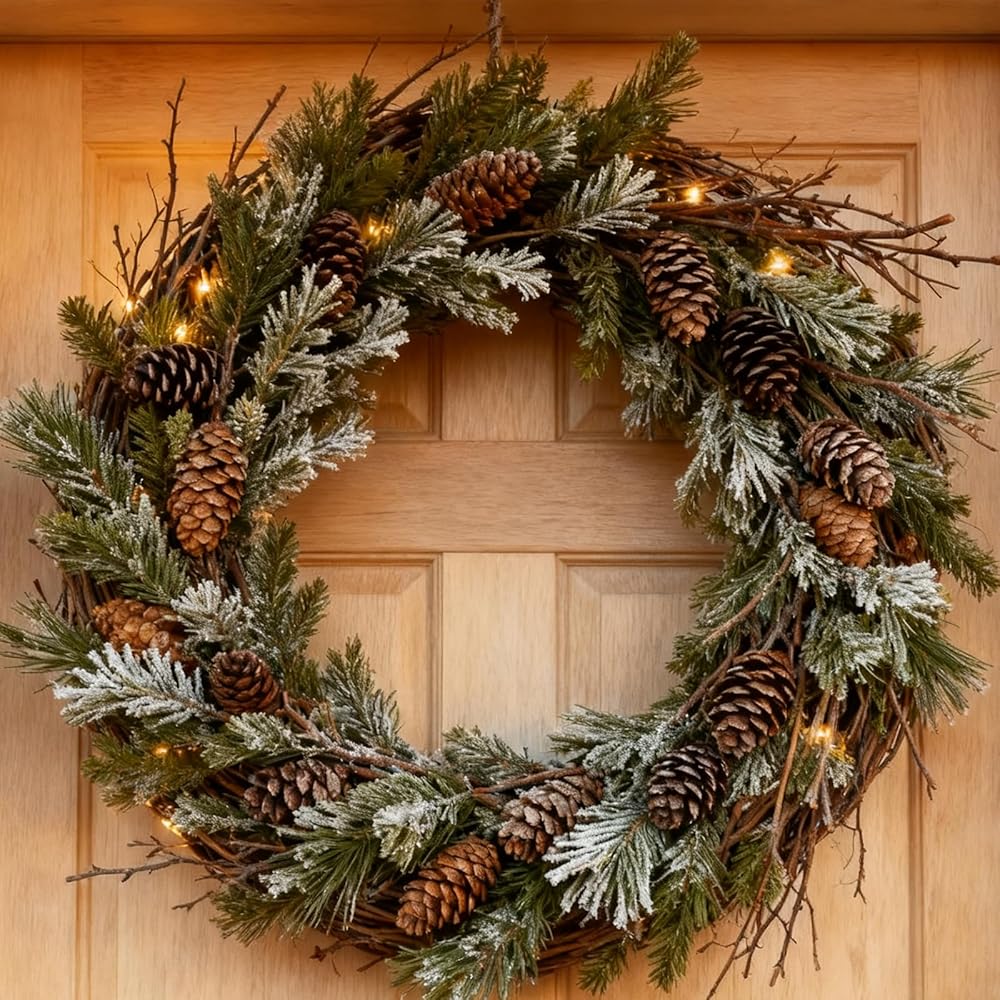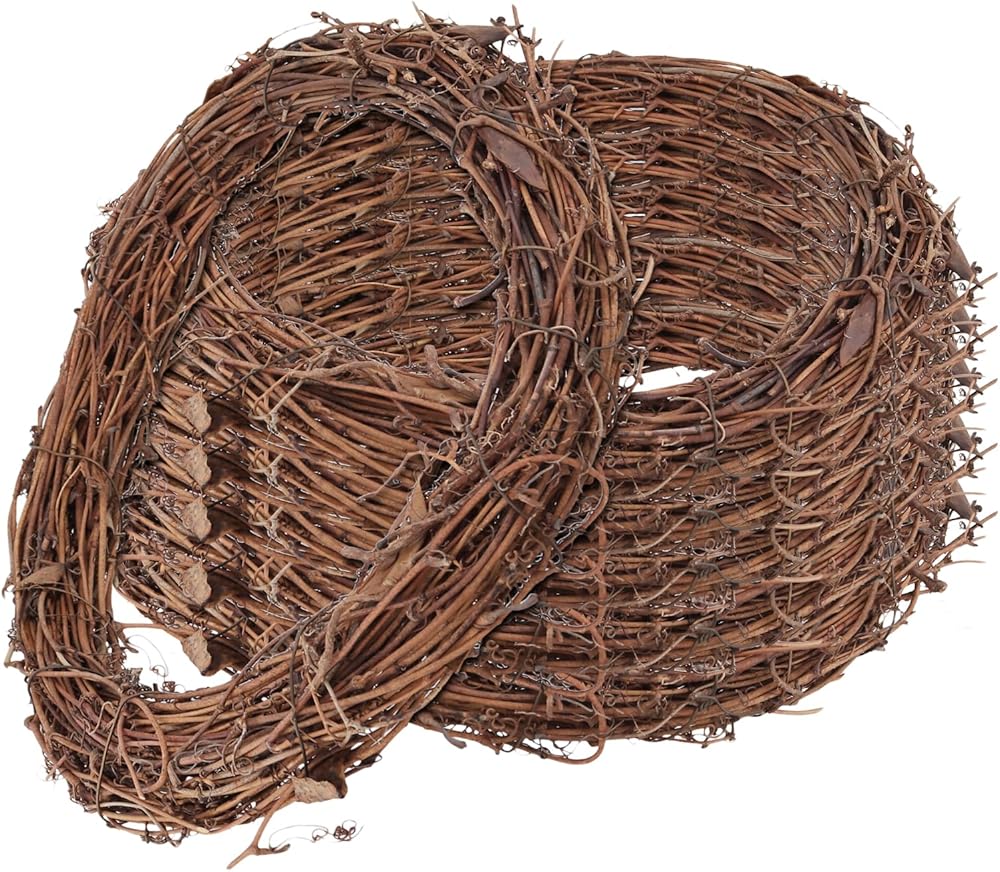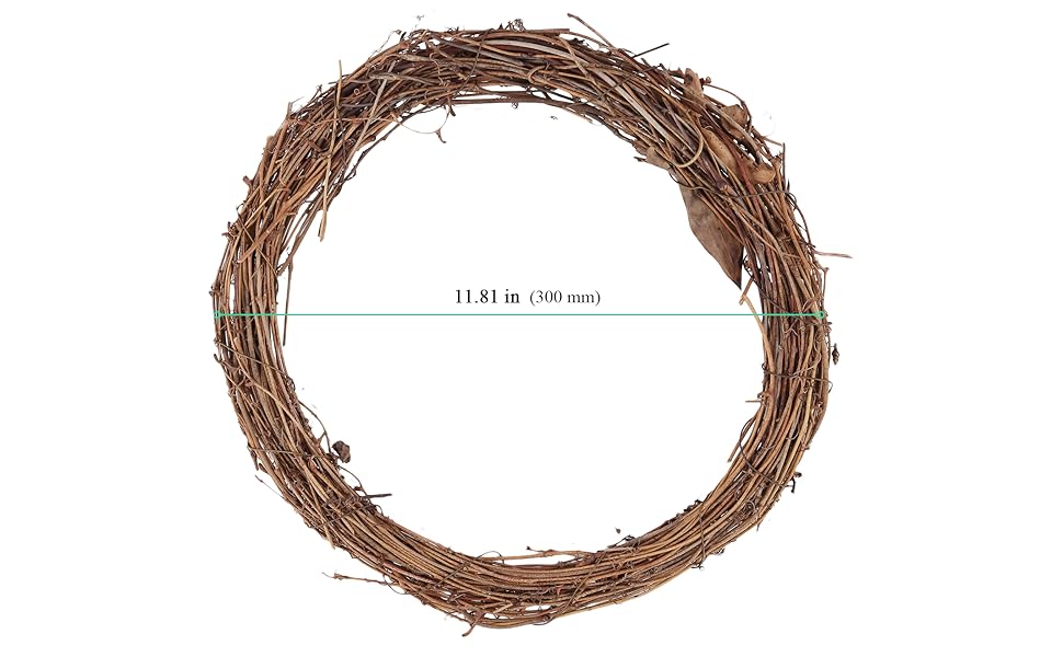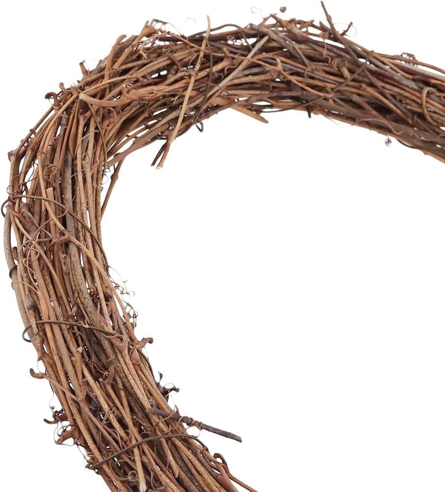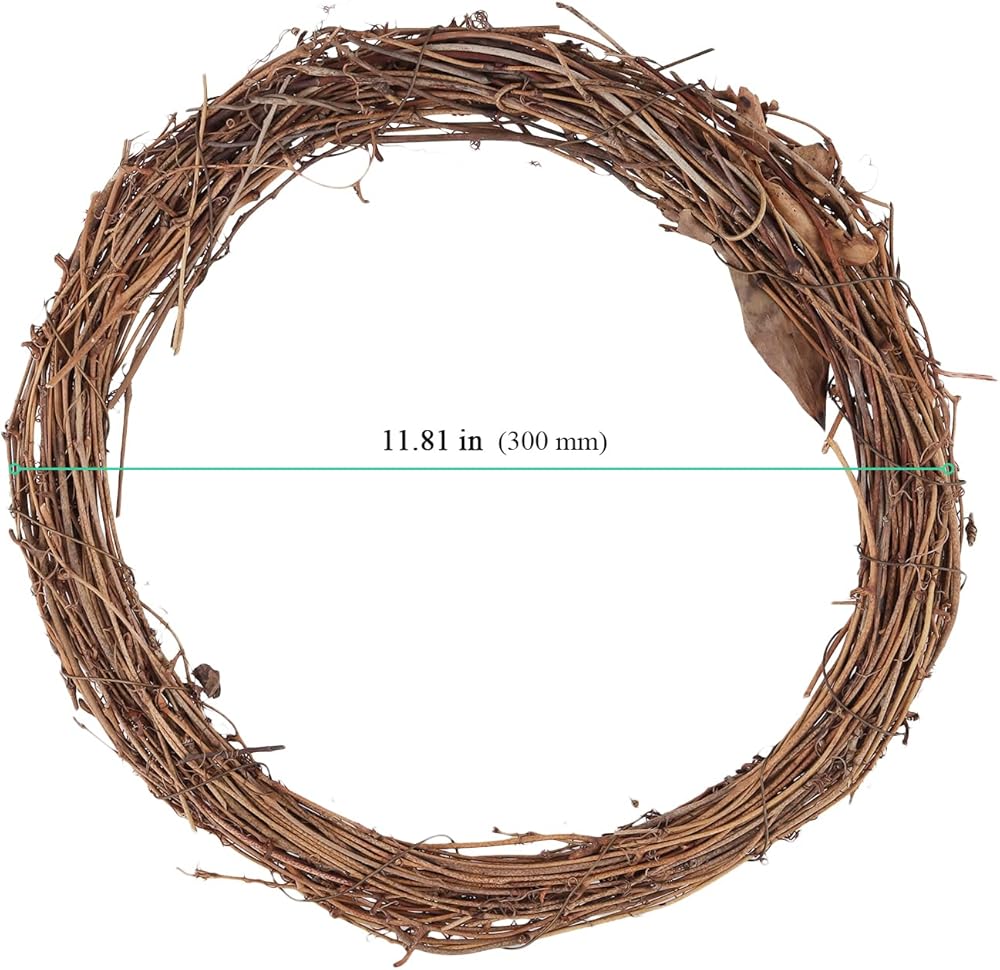 - البناء: كل إكليل مصنوع بعناية من فروع الكرمة، منسوج معًا لخلق قاعدة متينة لعناصر الديكور الخاصة بك