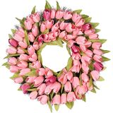 Welcome the vibrant energy of spring and summer to your home with the Kuimen Tulip Wreath. Measuring 26 inches in diameter, this beautifully crafted front door wreath is designed to fit doors 32 inches and wider. Its versatile design complements any door material or color, and it also serves as a charming decoration for fireplaces, walls, and porches. What sets this wreath apart is the included detachable "bleesd" sign. This thoughtful addition infuses the arrangement with warmth and meaning, making it more than just a decor piece—it becomes a sincere expression of love. It is an especially touching gift for Mother's Day or a mother's birthday, sure to convey your deepest gratitude and brighten her day. Designed in a delightful pink color scheme, accented with hints of purple and lush green foliage, this wreath brings the fresh, lively atmosphere of the seasons right to your doorstep. The realistic faux tulips are carefully arranged on a sturdy artificial vine base, creating a full, vibrant look that is both elegant and inviting. It is the perfect spring wreath and summer wreath to enhance your home's curb appeal. To ensure your wreath stays beautiful season after season, we recommend displaying it indoors or in covered outdoor areas. Limiting prolonged exposure to harsh direct sunlight (such as on south-facing doors) and heavy rain will help preserve its rich colors and overall quality. Whether you're decorating your own space or gifting it to someone special, the Kuimen Tulip Wreath offers lasting beauty and a heartfelt message for any occasion.