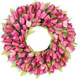 إكليل توليب، إكليل باب أمامي وردي لربيع وصيف مقاس 26 بوصة مع علامة تنزف، مثالي للديكور الموسمي (وردي، 26) in Kuwait