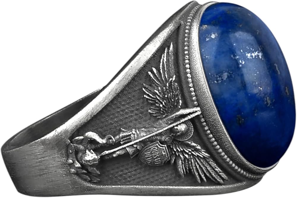 باي سيفلر ستون - خاتم القديس ميخائيل رئيس الملائكة مع حجر العقيق الأسود للرجال، مجوهرات أنيقة من الفضة in Kuwait