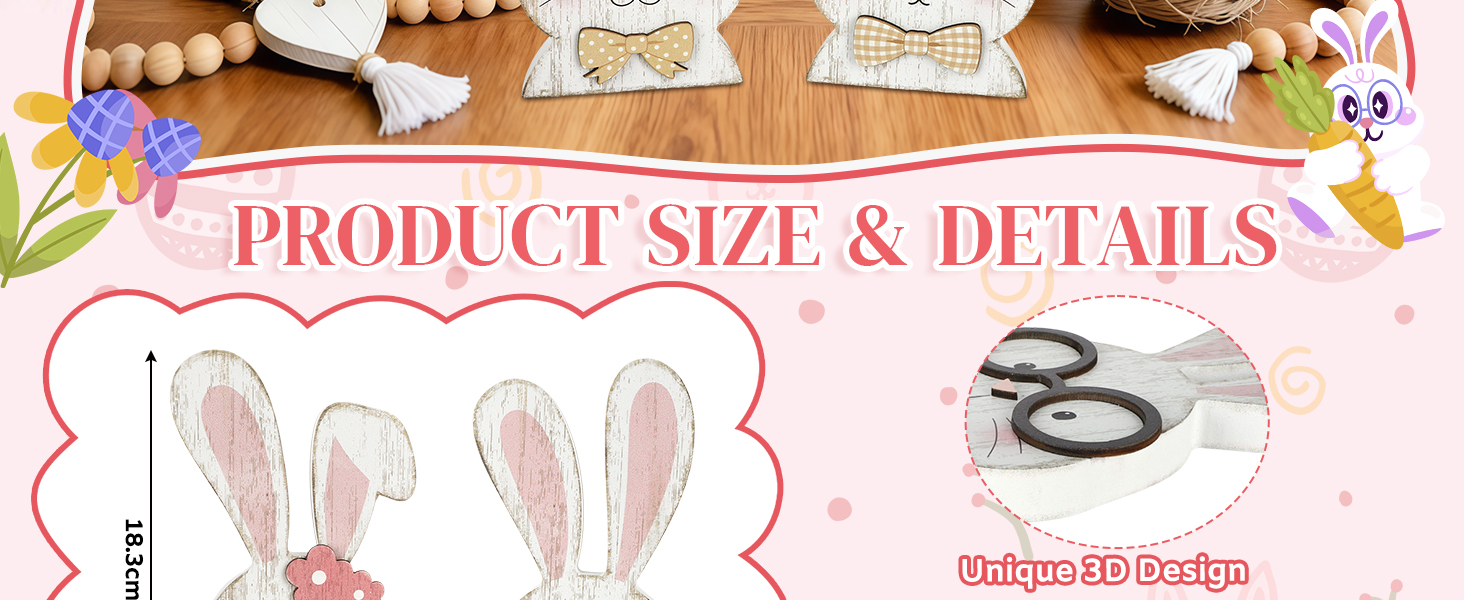• متينة ومصنوعة جيدًا: مصنوعة من الخشب عالي الجودة (سُمك 0.6 سم)، زينة عيد الفصح هذه مقاومة للبهتان والاعوجاج والكسر؛ البناء القوي يضمن الجمال والاستخدام لفترة طويلة