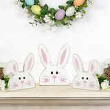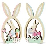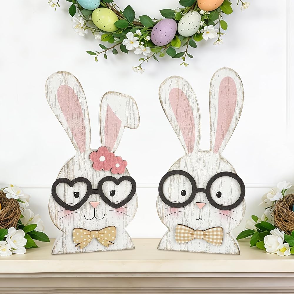 قطعتان من زينة عيد الفصح، ديكور طاولة أرنب خشبي لمنزل المزرعة، لافتة قطع مركزية على شكل أرنب ريفي للمنزل، صينية متدرجة، لوازم حفلات المكتب