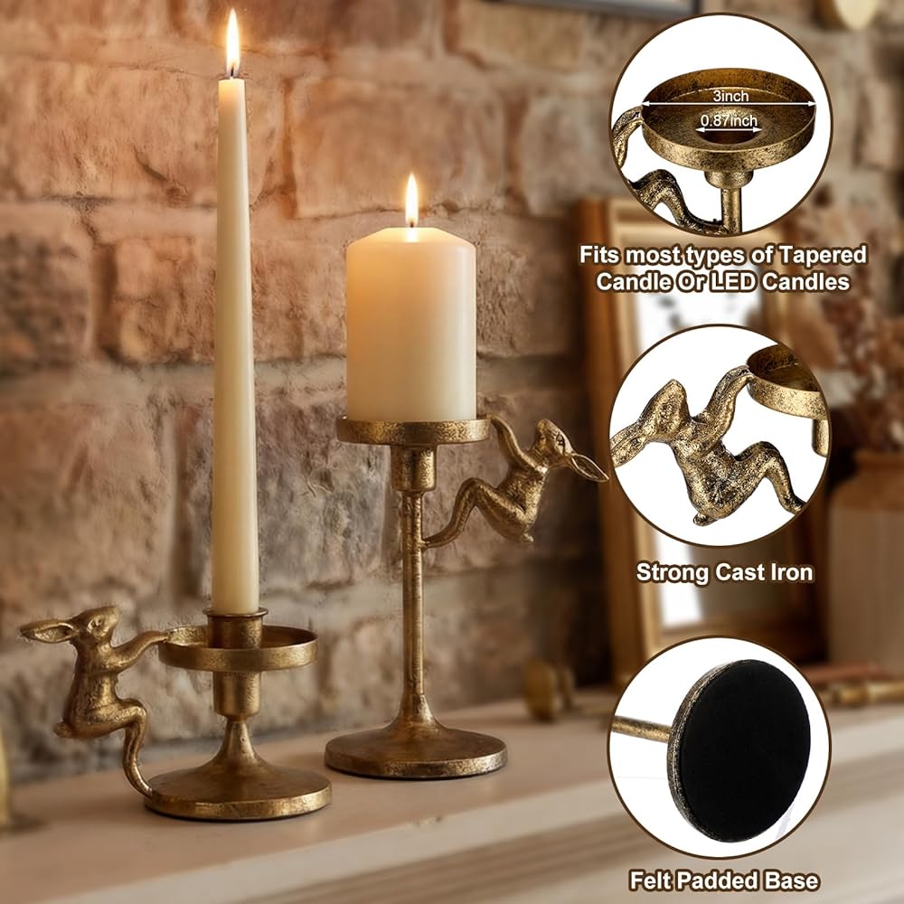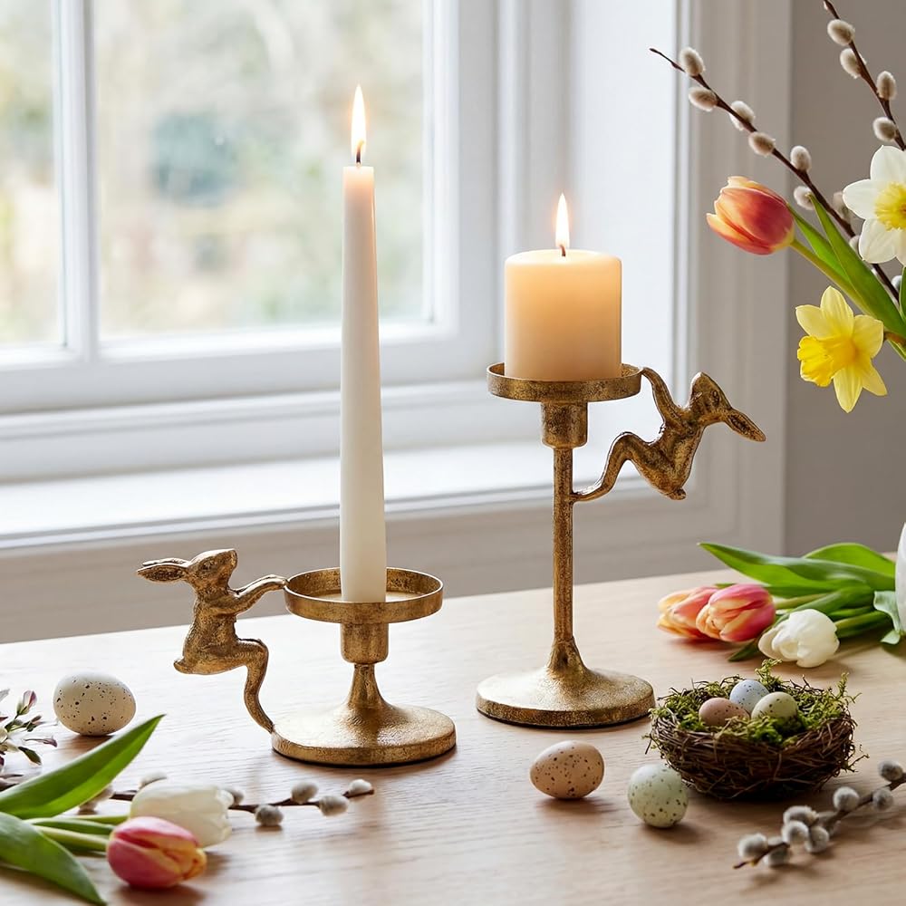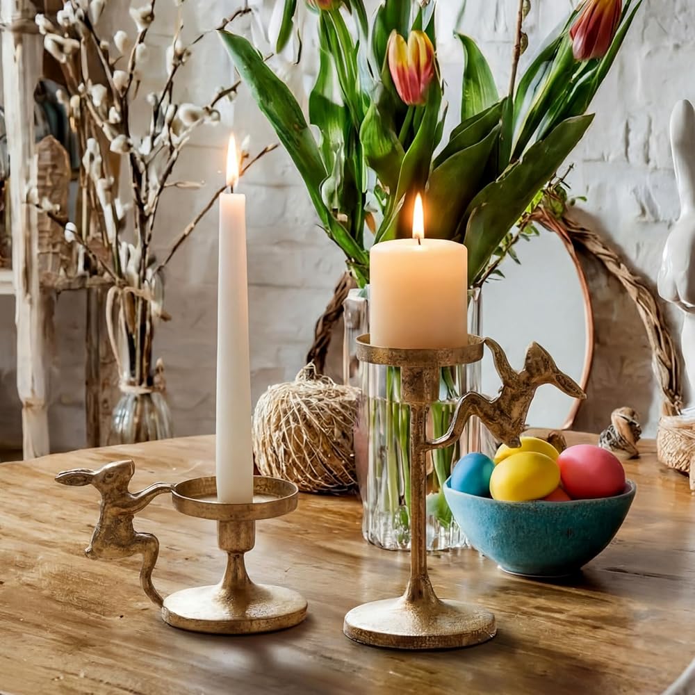 The simple and retro design of rustic candlesticks pedestal seamlessly fits rustic, gold, modern and other decor styles. The easter bunny taper candle holder becomes a highlight without complicated matching, adding an elegant atmosphere to weddings, festivals or daily homes.