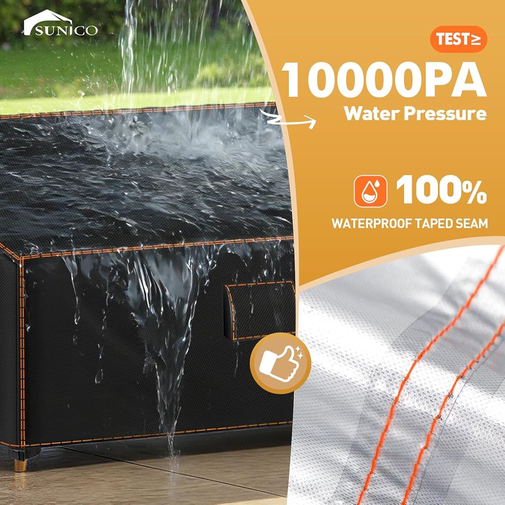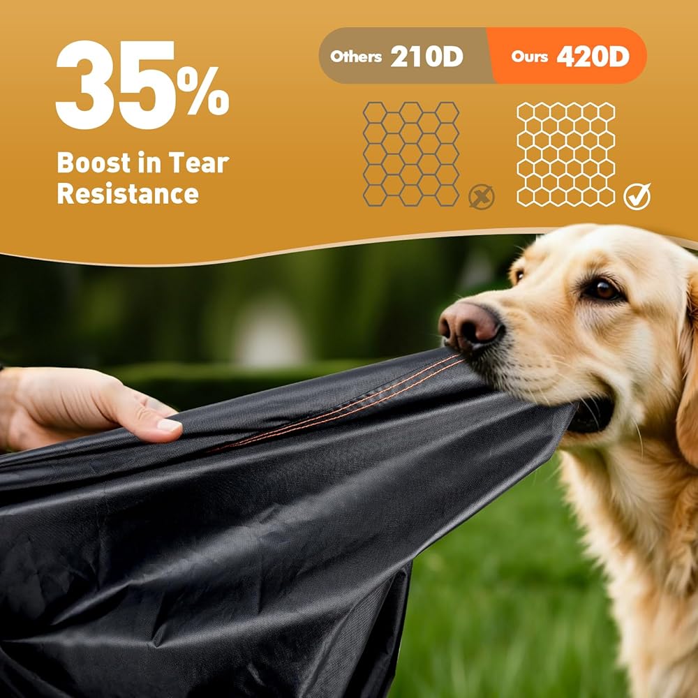 【مقاومة عالية للتمزق】غطاء الأثاث الخارجي الخاص بنا يثير الإعجاب بمقاومته الاستثنائية للتمزق. السر يكمن في المادة: نسيج أكسفورد عالي الكثافة 100 جرام لكل متر مربع 420D والذي يظل أكثر مقاومة حتى تحت أشعة الشمس الشديدة مقارنة بالعديد من بدائل الأقمشة السميكة ولكن المنسوجة بشكل فضفاض.