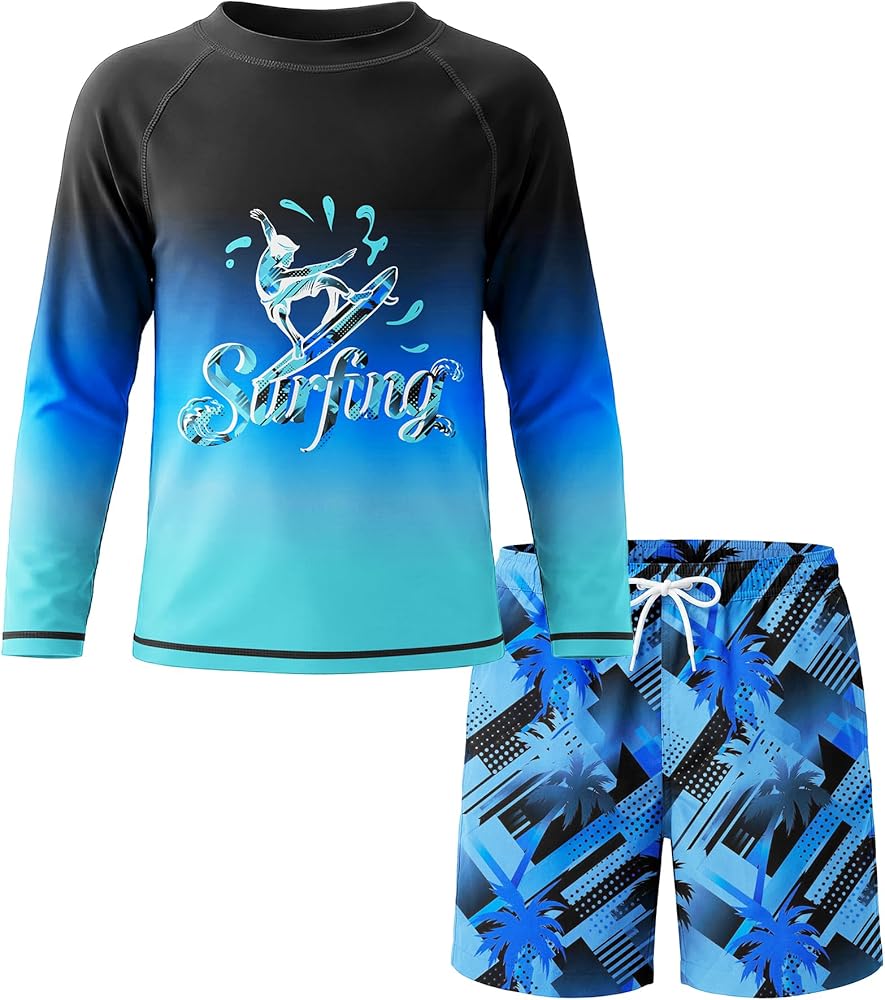 المقاس: طقم ملابس سباحة مكون من قطعتين مع قميص طويل الأكمام وسروال سباحة مناسب للأعمار من 7 إلى 16 عامًا. يرجى الرجوع بعناية إلى جدول المقاسات للشراء