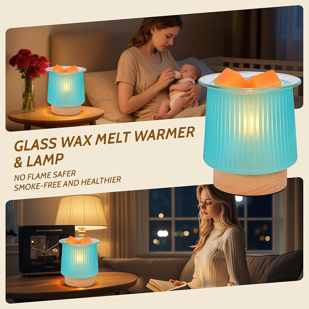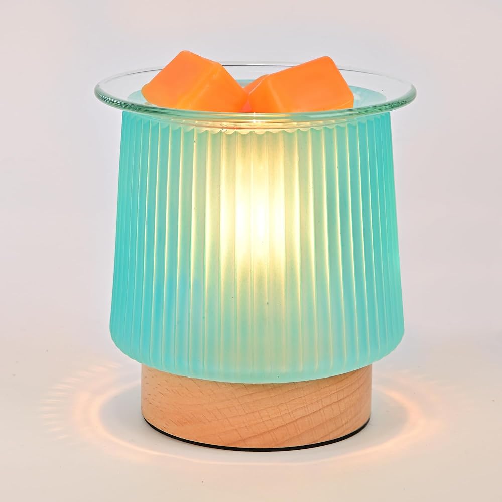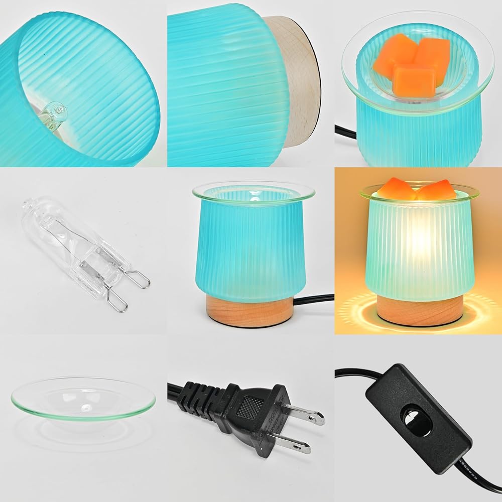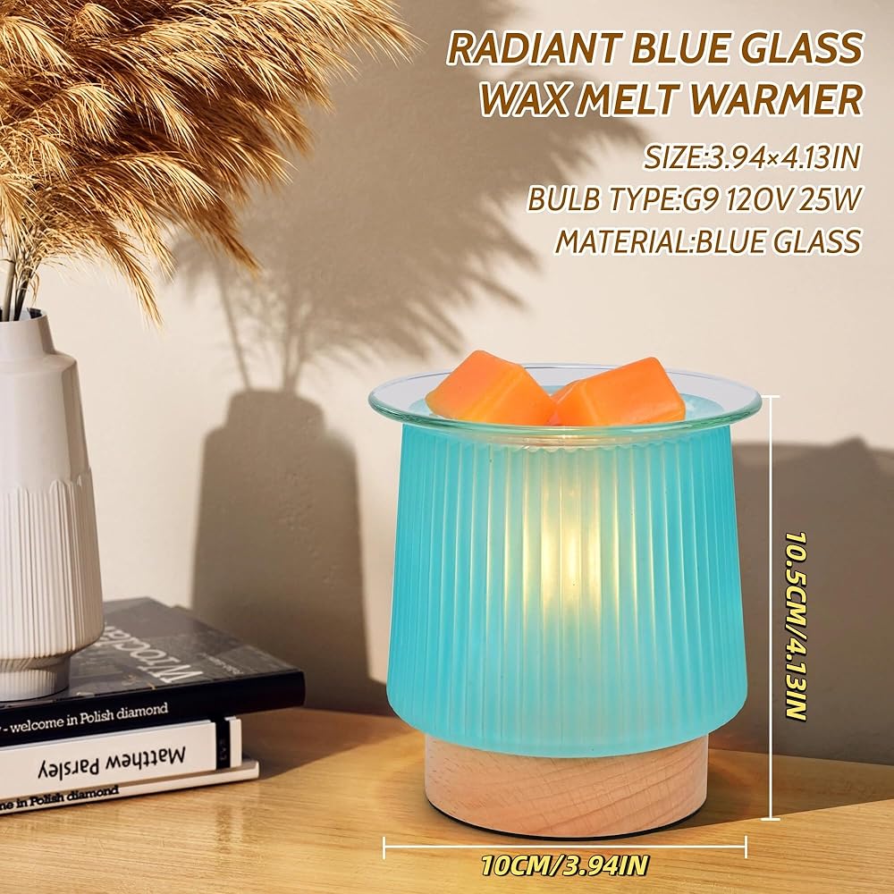 جهاز تسخين الشمع الزجاجي مع تسخين المصباح، تصميم زجاجي سماوي أنيق، يذوب كتل الشمع بسرعة، يطلق عطرًا طويل الأمد، موقد شمع مثالي وإضاءة ليلية لهدايا ديكور المطبخ المنزلي