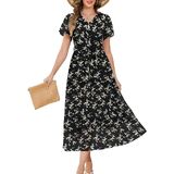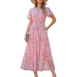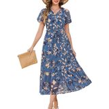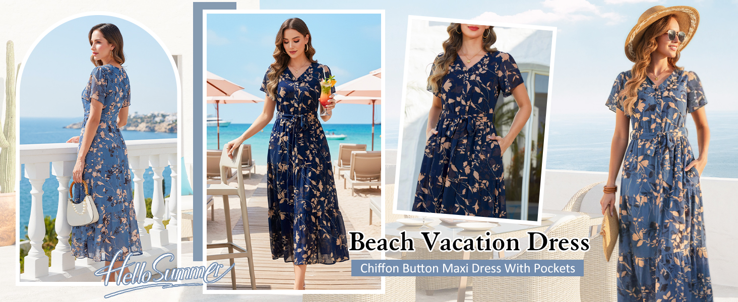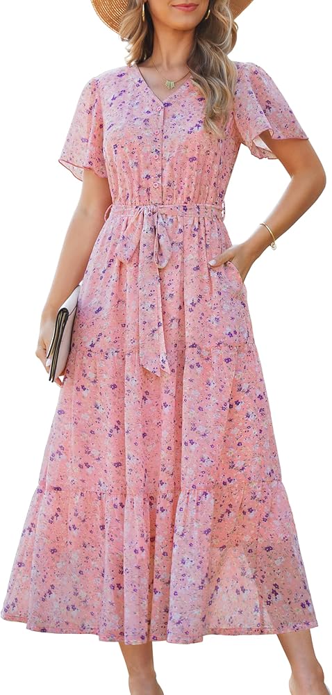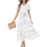 فستان صيفي: هذا الفستان الصيفي الطويل العصري يوفر الراحة وسهولة الحركة. بفضل أزراره الأنيقة، وحزامه القابل للتعديل، وطبعات الزهور الرومانسية، ونسيج الشيفون الخفيف، فهو مزيج مثالي من الأناقة والعملية، مما يجعله خيارًا مثاليًا لفصل الصيف.
