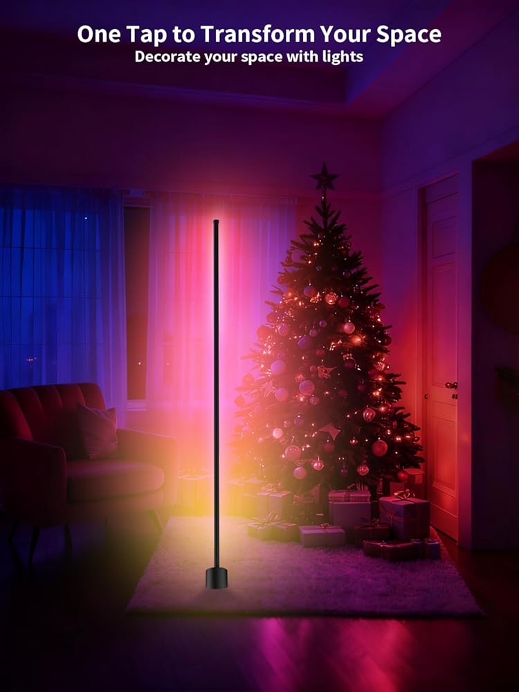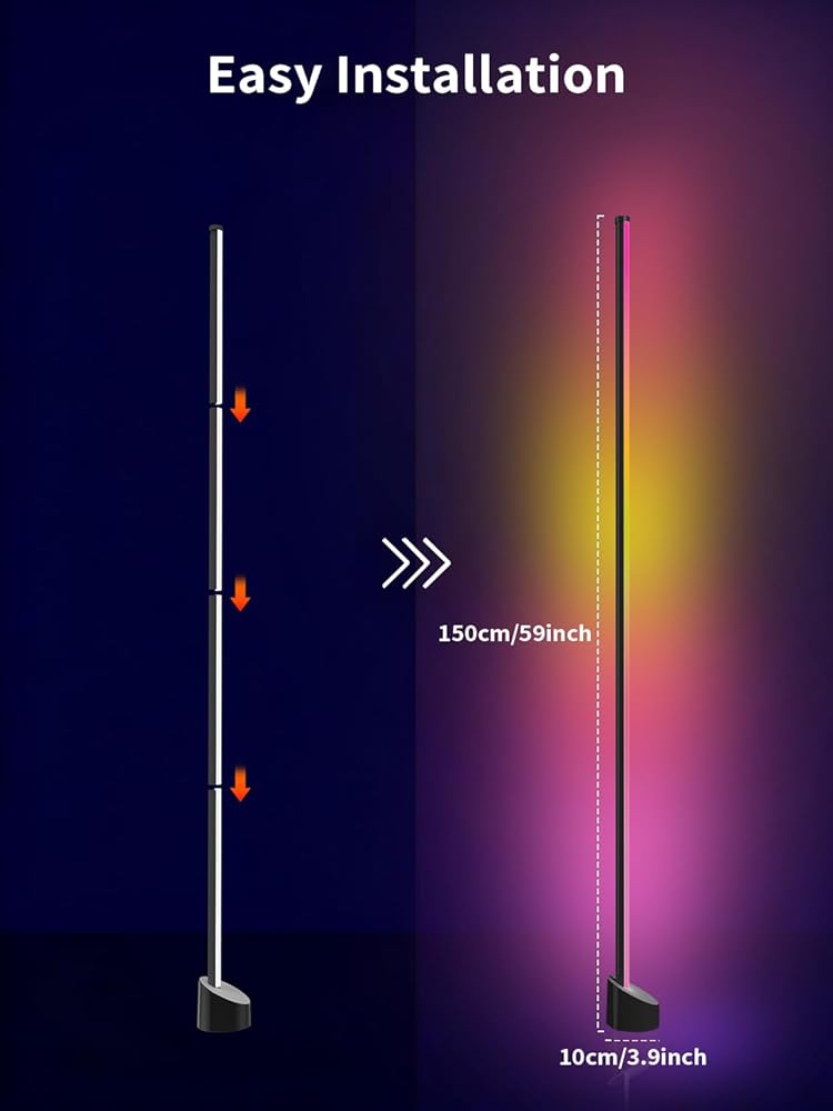 مصباح أرضي للزاوية، مصباح LED RGB مع تطبيق ذكي وجهاز تحكم عن بعد لتغيير الألوان، وإضاءة محيطة لمزامنة الموسيقى، وإضاءة مزاجية مع 16 مليون لون لغرفة النوم وغرفة المعيشة وغرفة الألعاب