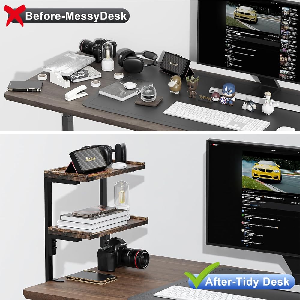 【Flexible Usage】The desk shelf (for desk top) offers two installation methods. You can choose to mount it on your desktop to organize items, or install it under the desk as a hidden storage solution.