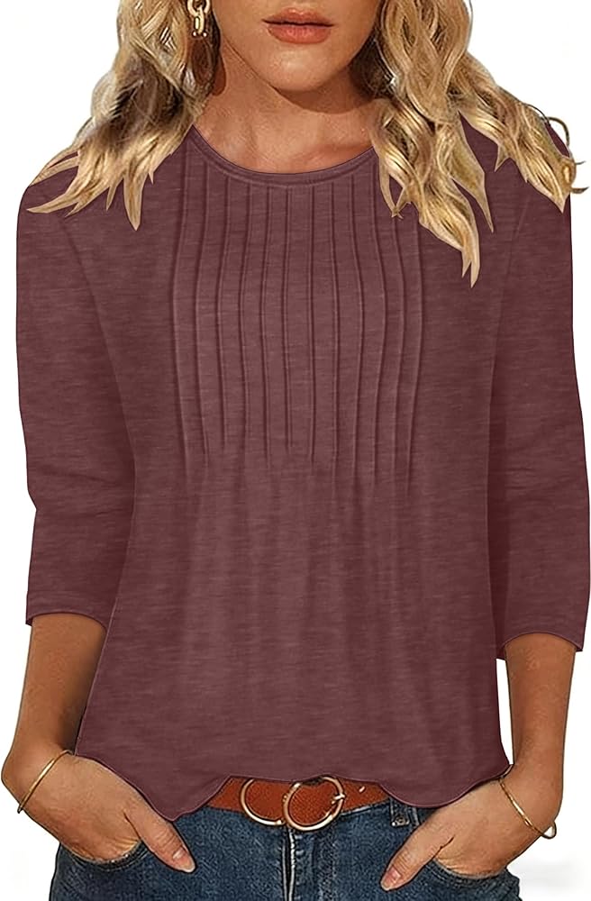التصميم: بلوزات نسائية كاجوال أنيقة تتميز برقبة دائرية مع طيات عمودية لملاءمة فضفاضة ومريحة، رائعة لأولئك الذين يفضلون النمط المريح وملابس عطلة الشاطئ