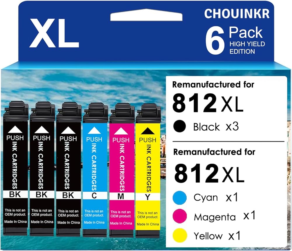 - محتوى العبوة: استبدال خراطيش الحبر CHOUINKR لخراطيش الحبر epson 812XL 812 XL T812XL