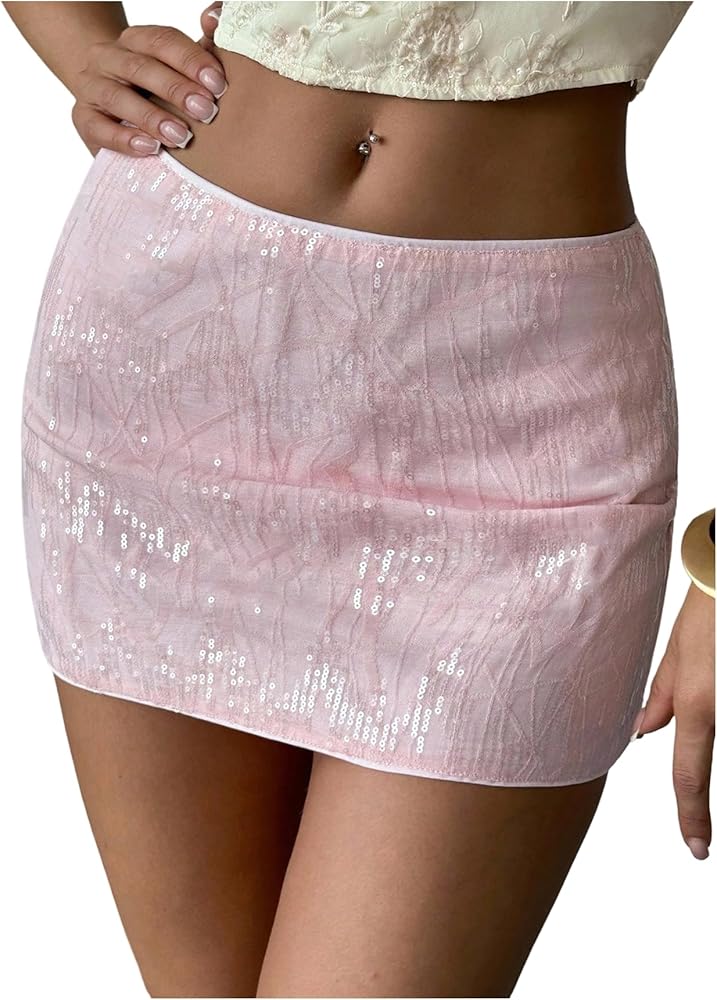تنورة قصيرة نسائية من SweatyRocks مُزينة بالترتر وخصر منخفض ولامعة ولامعة وتنانير حفلات ضيقة
