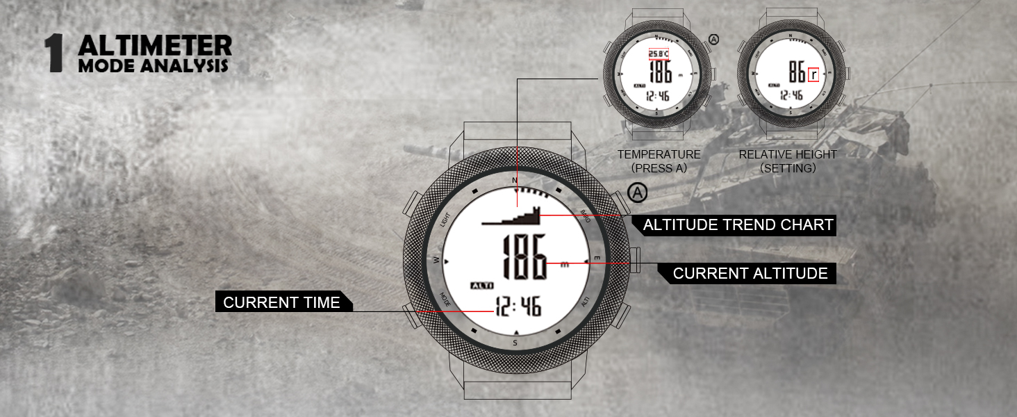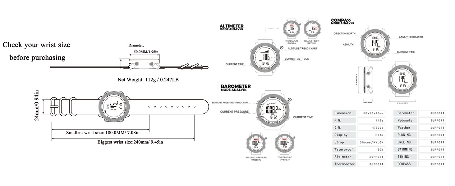 APACHE Outdoor Sports Companion Meet the APACHE Outdoor Sports Device – your robust, all-in-one gear tailored for outdoor enthusiasts and active individuals, delivering reliable performance across adventures and daily routines. It equips you with essential outdoor tools: an altimeter (for elevation tracking), barometer (atmospheric pressure monitoring), compass (directional guidance), and thermometer (ambient temperature reading) to keep you attuned to your surroundings during hikes, treks, and more. For activity tracking, it supports running, cycling, and swimming modes, paired with 3D step counting to log movement data. Daily utilities include a second time zone display, countdown timer, on-time alarm, alarm clock, stopwatch, and a backlight for clear visibility in low-light conditions.