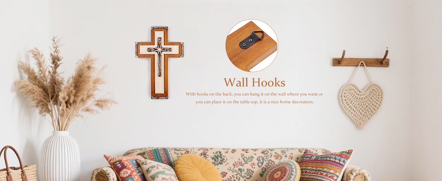 مادة الخشب الصلب: بالإضافة إلى الصليب المزخرف في الأعلى، فإن الصليب الكبير بأكمله مصنوع من مادة الخشب الصلب، جنبًا إلى جنب مع البساطة الطبيعية لخلق نمط رعوي أمريكي.