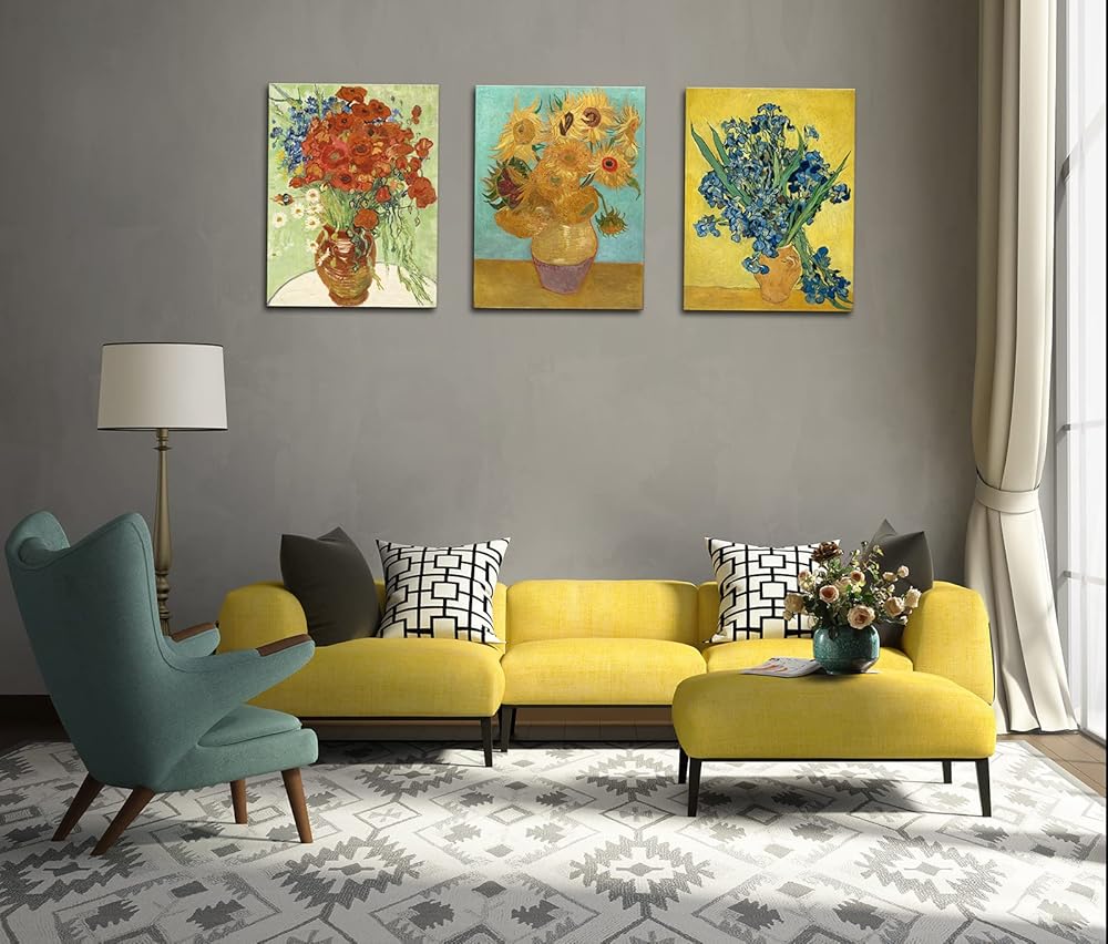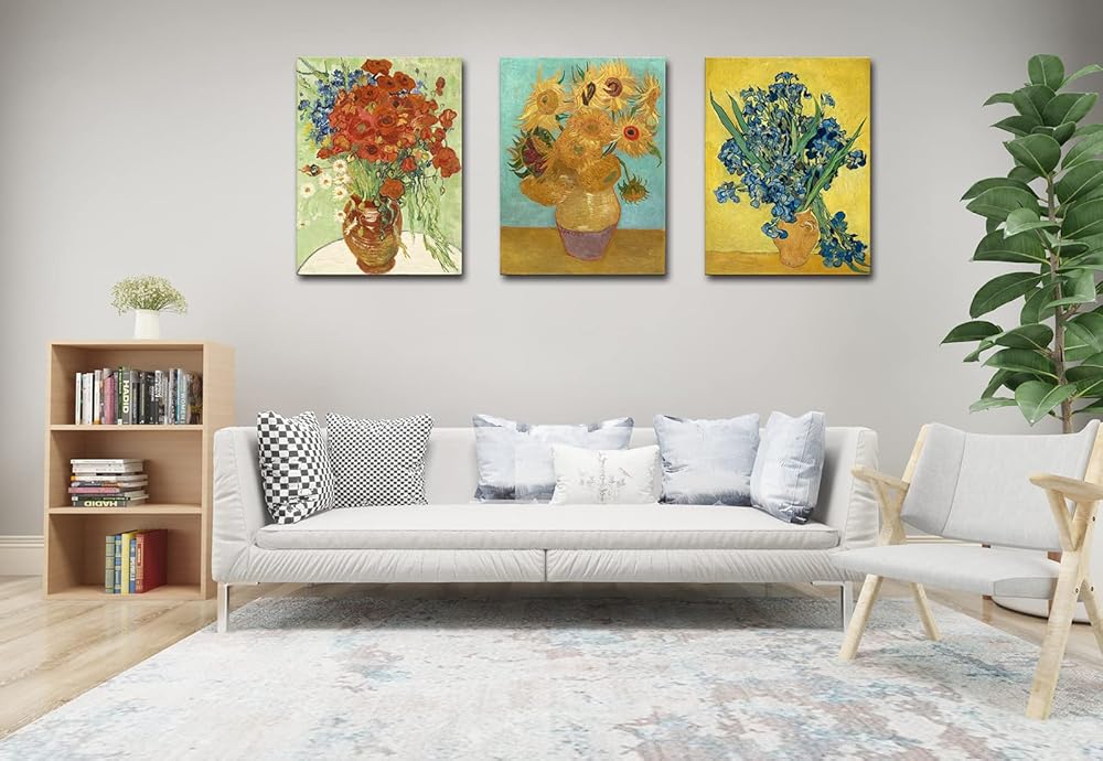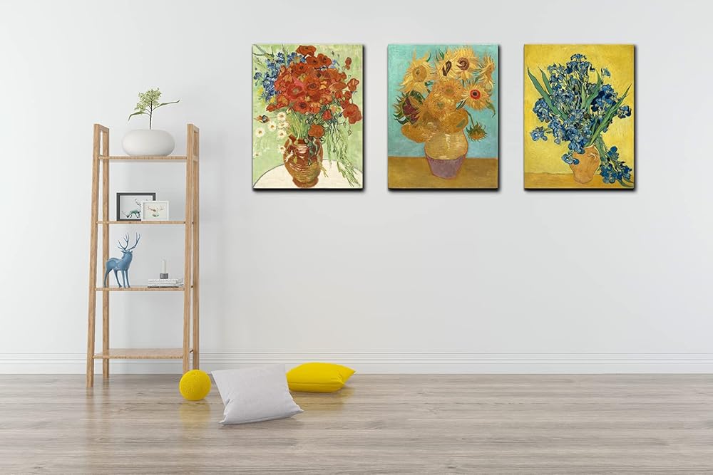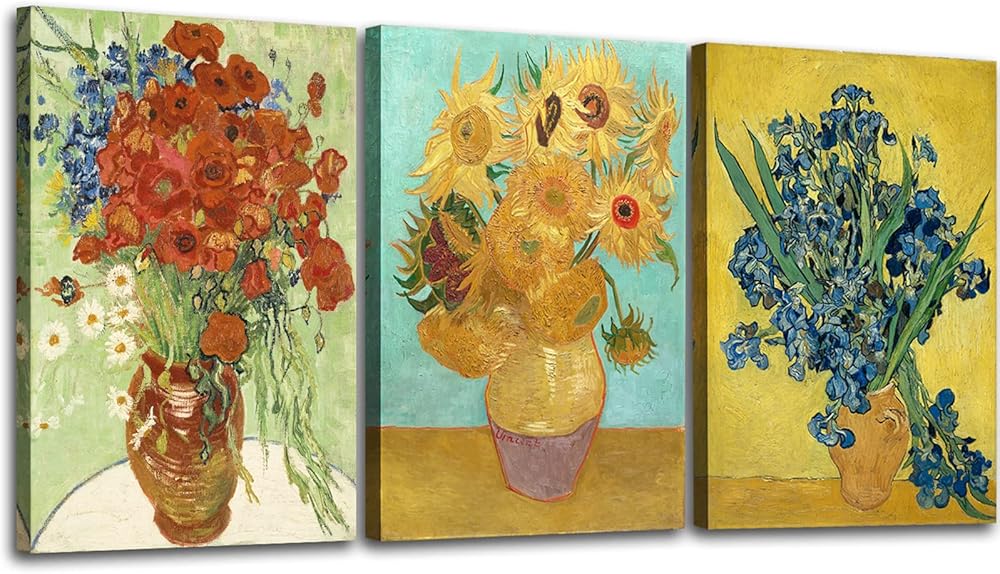 OKEXCKK عباد الشمس من فنسنت فان جوخ جدار الفن، القزحية زهرة اللوحات الفنية الاستنساخ، قماش جيكلي يطبع صور لغرفة النوم المطبخ الحمام ديكور 12 "× 16" × 3 أجهزة الكمبيوتر