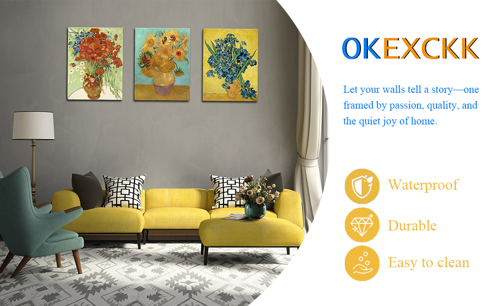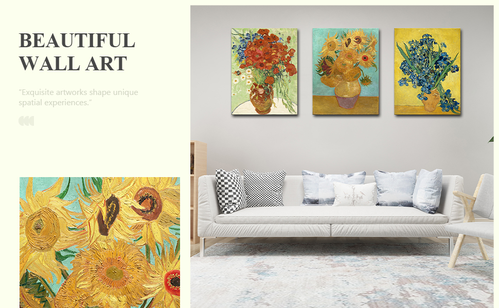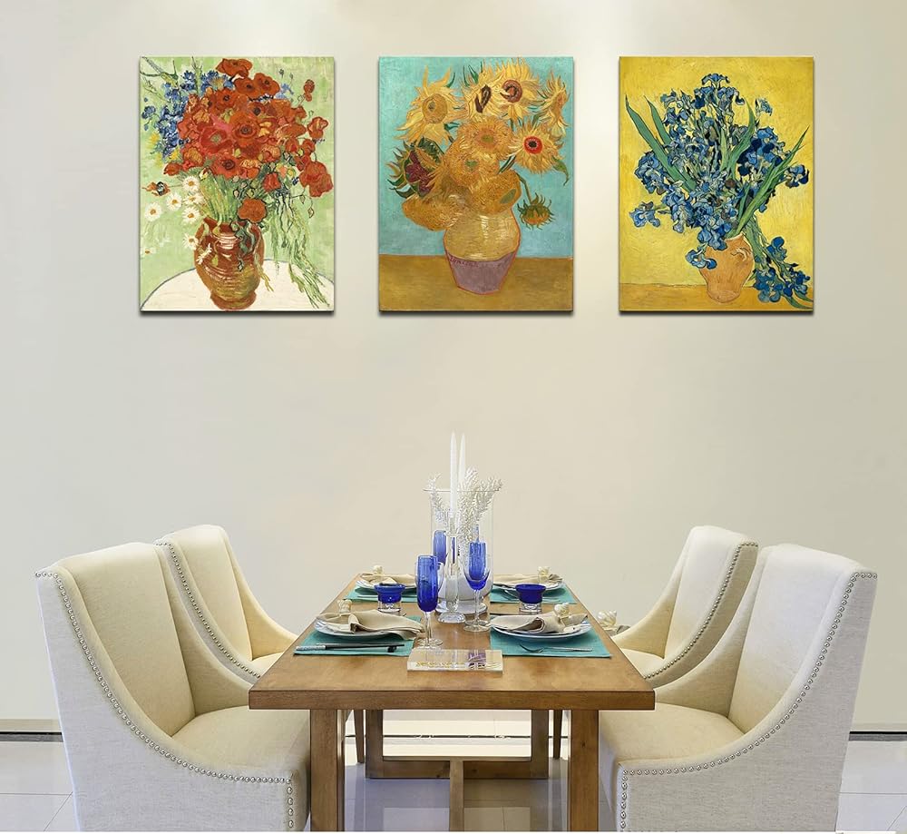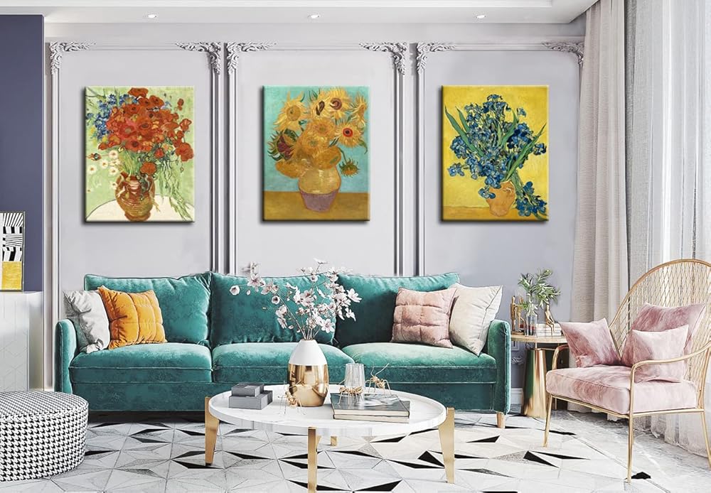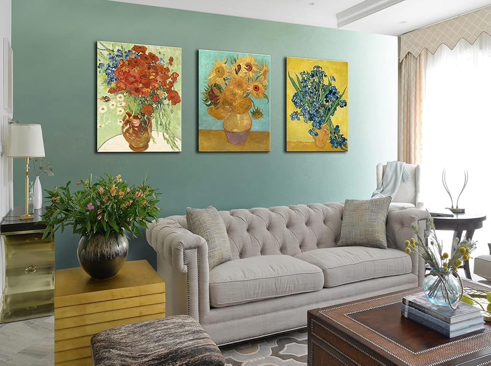 OKEXCKK عباد الشمس من فنسنت فان جوخ جدار الفن، القزحية زهرة اللوحات الفنية الاستنساخ، قماش جيكلي يطبع صور لغرفة النوم المطبخ الحمام ديكور 12 "× 16" × 3 أجهزة الكمبيوتر