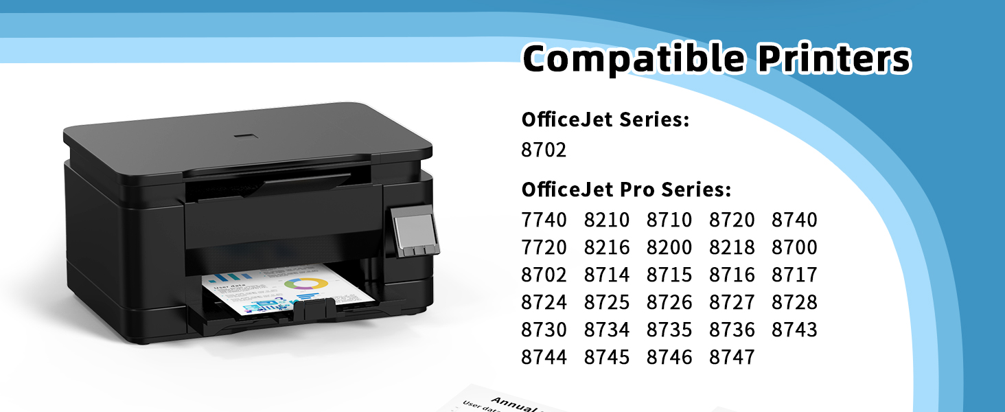 • توافق عالي مع الطابعة: OfficeJet pro 7740 8210 8710 8720 8740 7720 8216 8200 8218 8700 8702 8714 8715 8716 8717 8724 8725 8726 8727 8728 8730 8734 8735 8736 8743 8744 8745 8746 8747، أوفيس جيت 8702