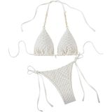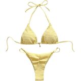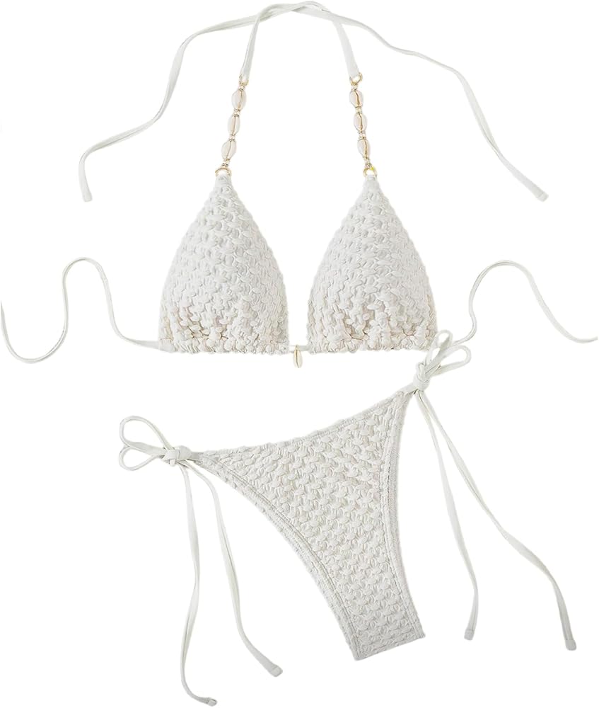• Features: 2 piece bikini sets for women, textured, halter neck, tie side, triangle bikini, thong bathing suit