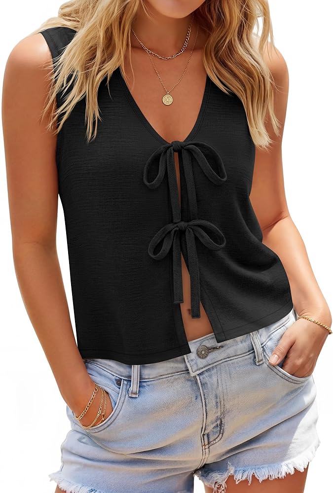 The tie front vest tops are simple and stylish, suit for some body shape.