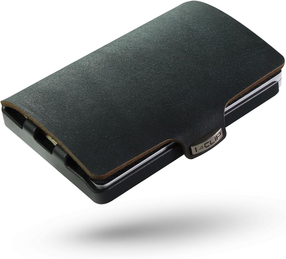 محفظة I-CLIP الأصلية الرفيعة للرجال - محفظة بمشبك نقود مع حامل بطاقات - محفظة جيب أمامية صغيرة تحمل ما يصل إلى 12 بطاقة - خفيفة الوزن للغاية بوزن 0.78 أونصة - جلد أسود ناعم - إطار أسود
