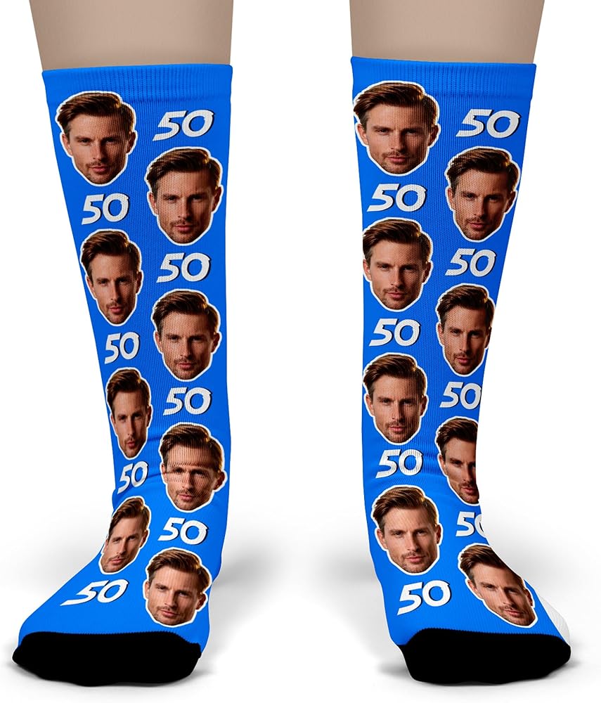 CUSTOM FACE & AGE DESIGN – Upload a photo and add any number to create a unique pair of milestone socks.