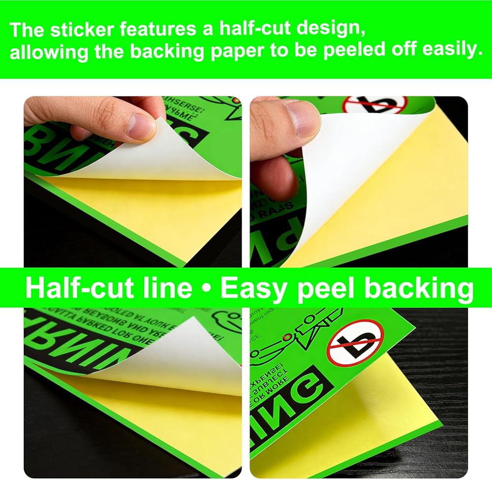تصميم خلفي سهل التقشير: يتميز الملصق بتصميم نصف مقطوع، مما يسمح بتقشير الورق الخلفي بسهولة باستخدام نصف خطوط مقطوعة مسبقًا من أجل الاستخدام السريع