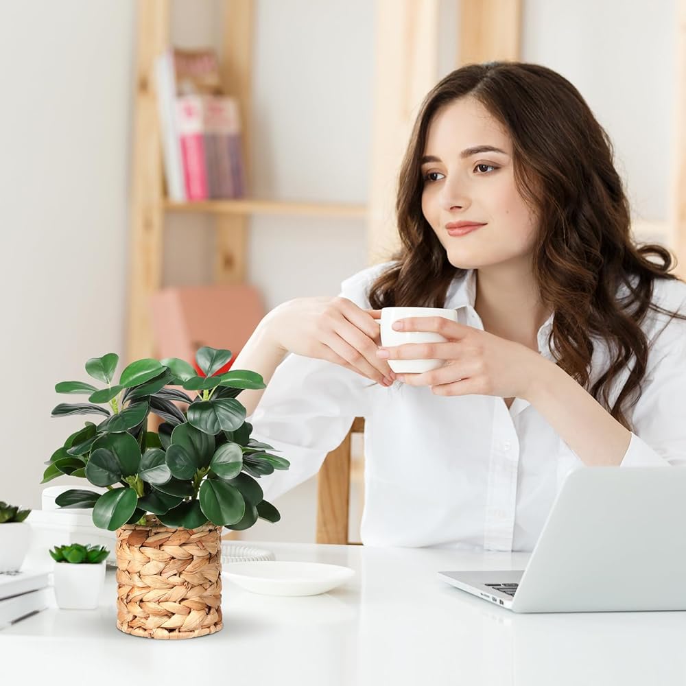 【تصميم مبتكر】 نباتات بوعاء منسوجة من العشب الطبيعي، مقترنة بنباتات تين أوراق الكمان الواقعية، دون الحاجة إلى الري أو ضوء الشمس. لن تتشوه أو تتلاشى بعد الاستخدام طويل الأمد.
