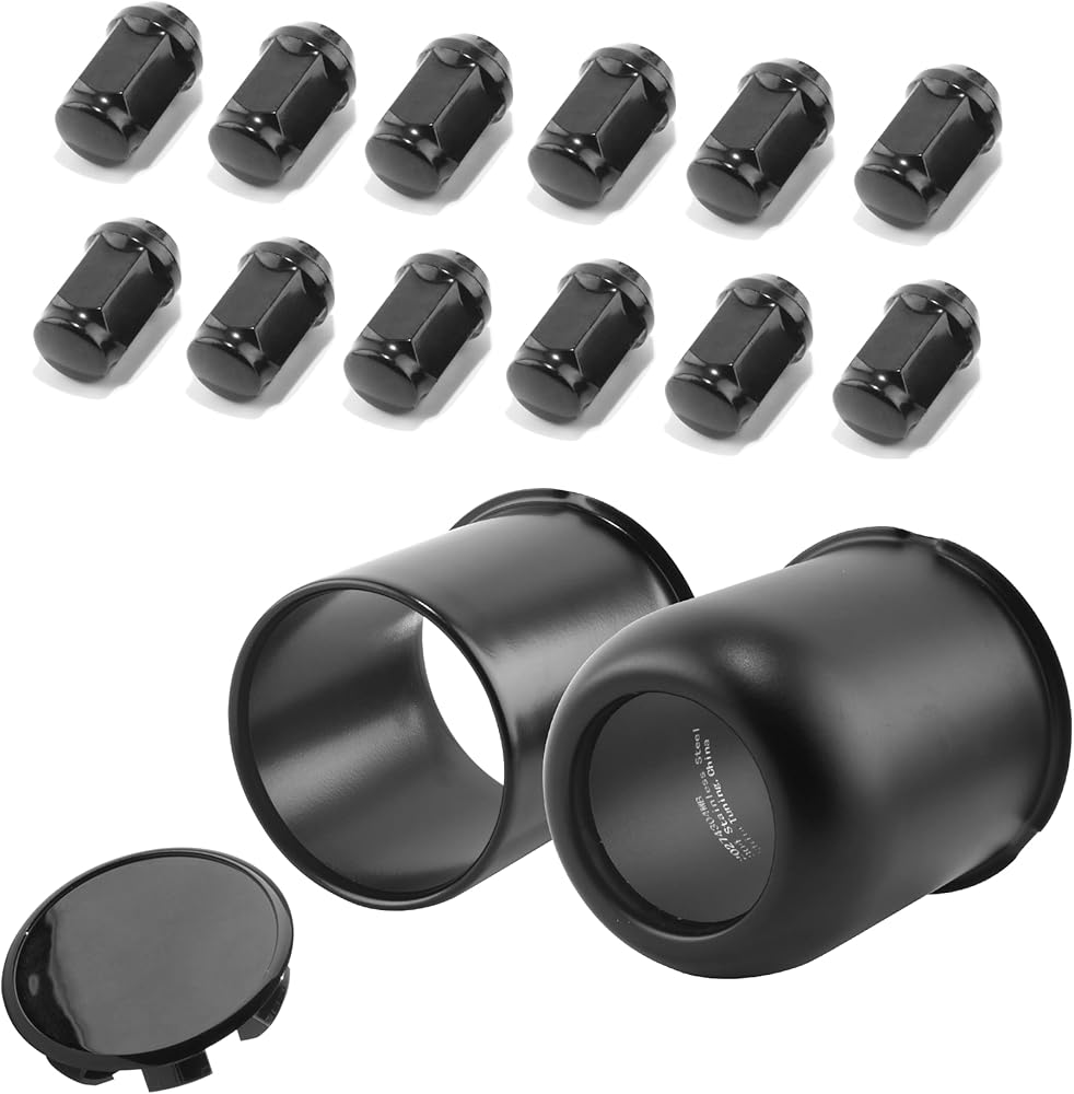 【تنبيه】- 3.19 أغطية مركزية للدفع: تناسب الأغطية المركزية التجويف المركزي 3.19 بوصة فقط، متوافقة مع إطارات عجلات المقطورة/الشاحنة RV SUV. صواميل عروة 1/2 × 20: بالنسبة لعجلات ما بعد البيع فقط، قد لا تناسب عجلات المصنع الأصلي وعجلات صانع السيارات. يوصى باستخدام مفتاح عزم الدوران، حيث أن استخدام مفاتيح الربط/الأدوات سوف يتسبب في تآكلها. يرجى السماح ببعض فقدان الطلاء. بسبب التأثيرات أثناء الولادة.