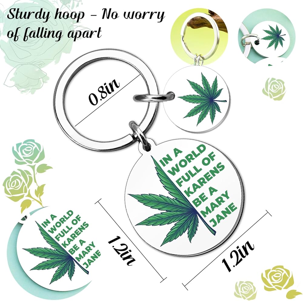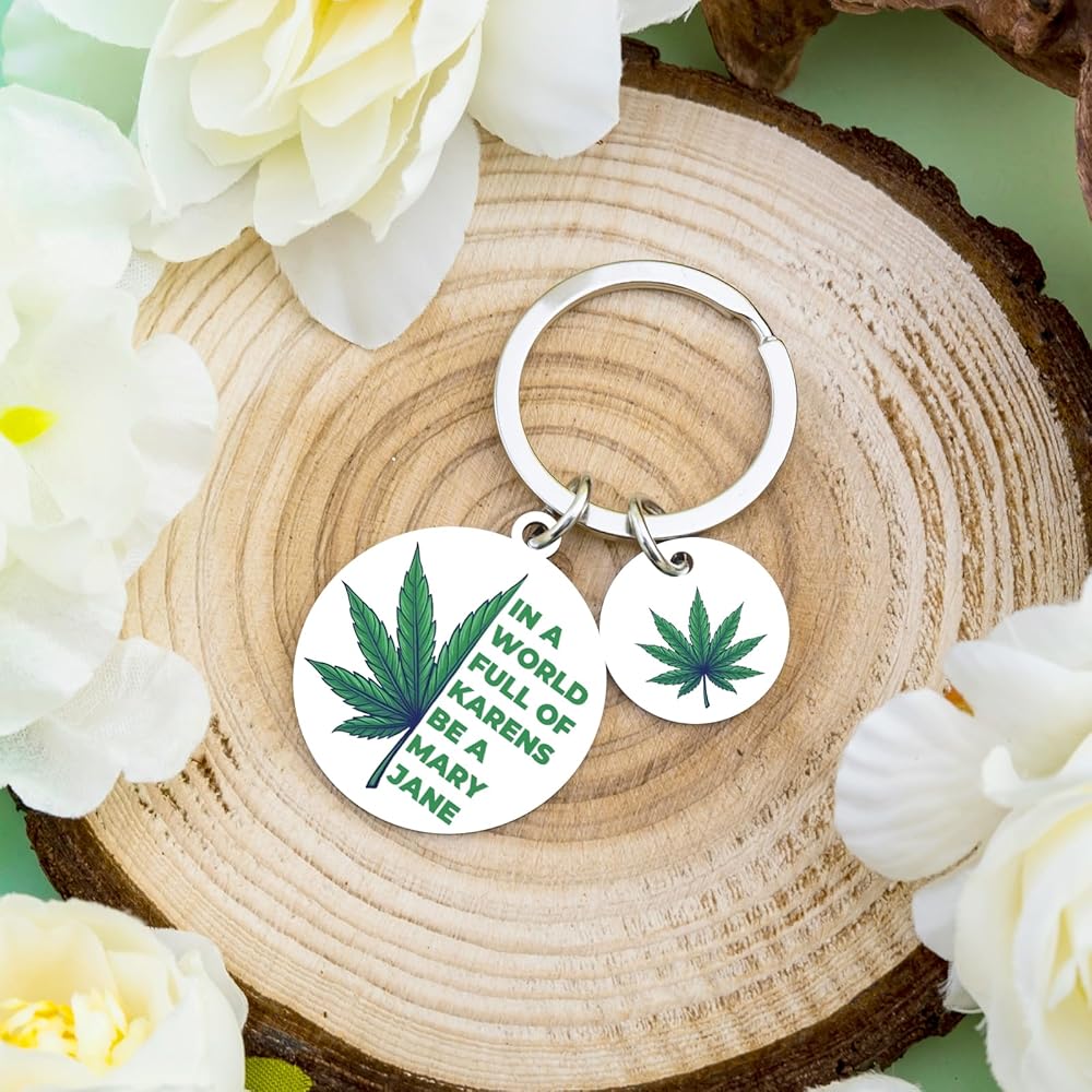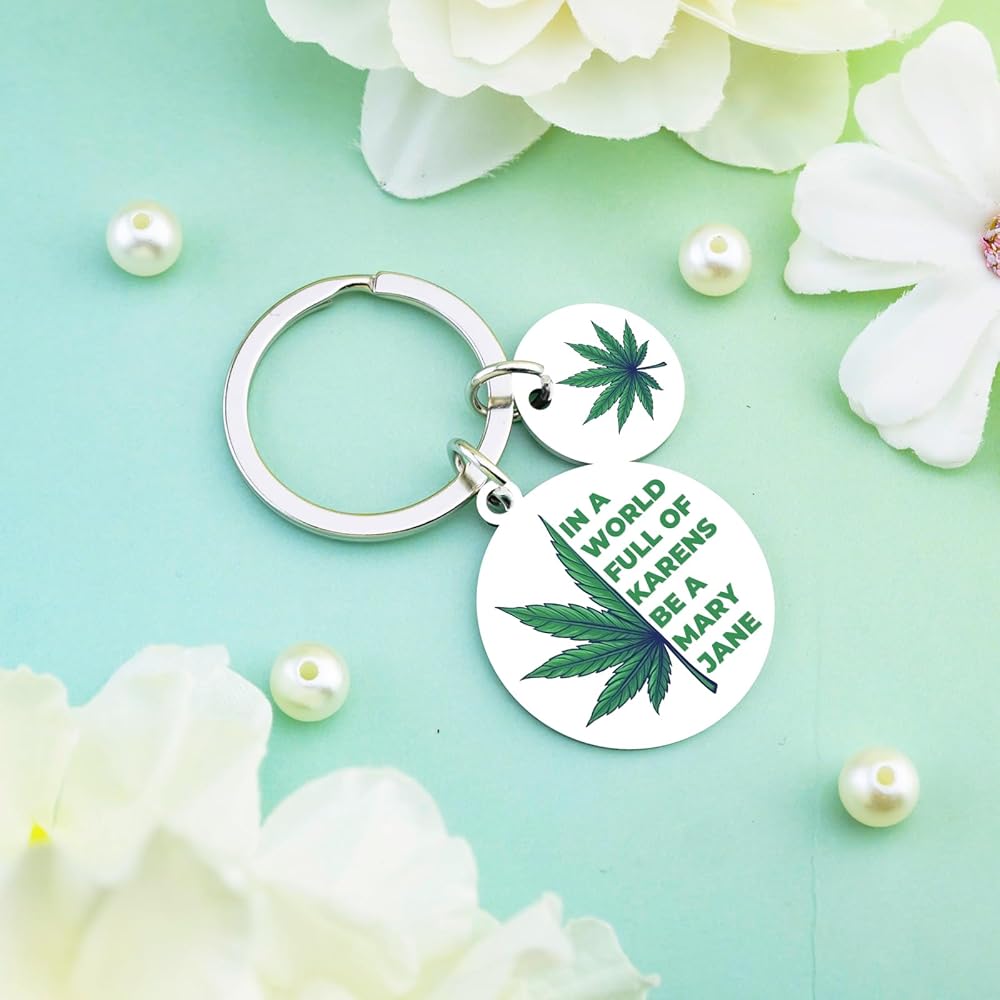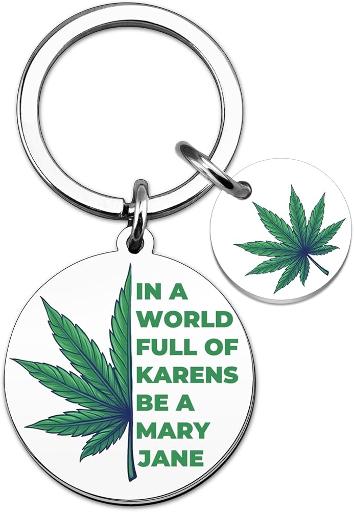 Stand out from the ordinary with the VIESUJI Weed Keychain, a statement piece for free spirits. More than just a keychain, it's a witty Cannabis Accessory and a perfect Weed Gift that celebrates individuality with its bold motto: "IN A WORLD FULL OF KARENS BE A MARY JANE."