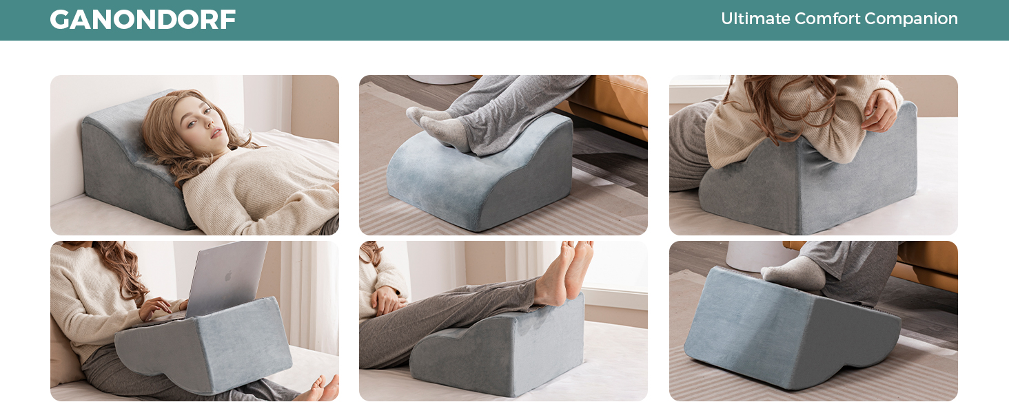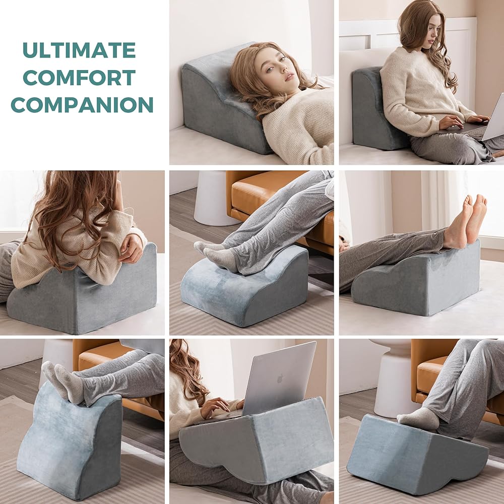 • راحة مريحة - تم تصميم مسند القدم هذا بإسفين على شكل علمي، وهو يدعم بشكل طبيعي قدميك وساقك وركبتيك وظهرك ورقبتك، مما يساعد على تقليل الضغط وتحسين الوضعية وتخفيف التعب الناتج عن فترات طويلة من الجلوس أو الاستلقاء.