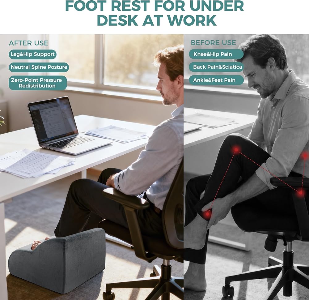مسند قدم مريح من Ganondorf لتحت المكتب في العمل، متعدد الأغراض للقدم ووسادة رفع الساق ووسادة دعم الظهر ودعم مكتب اللفة، رغوة عالية الكثافة مع غطاء قابل للغسل