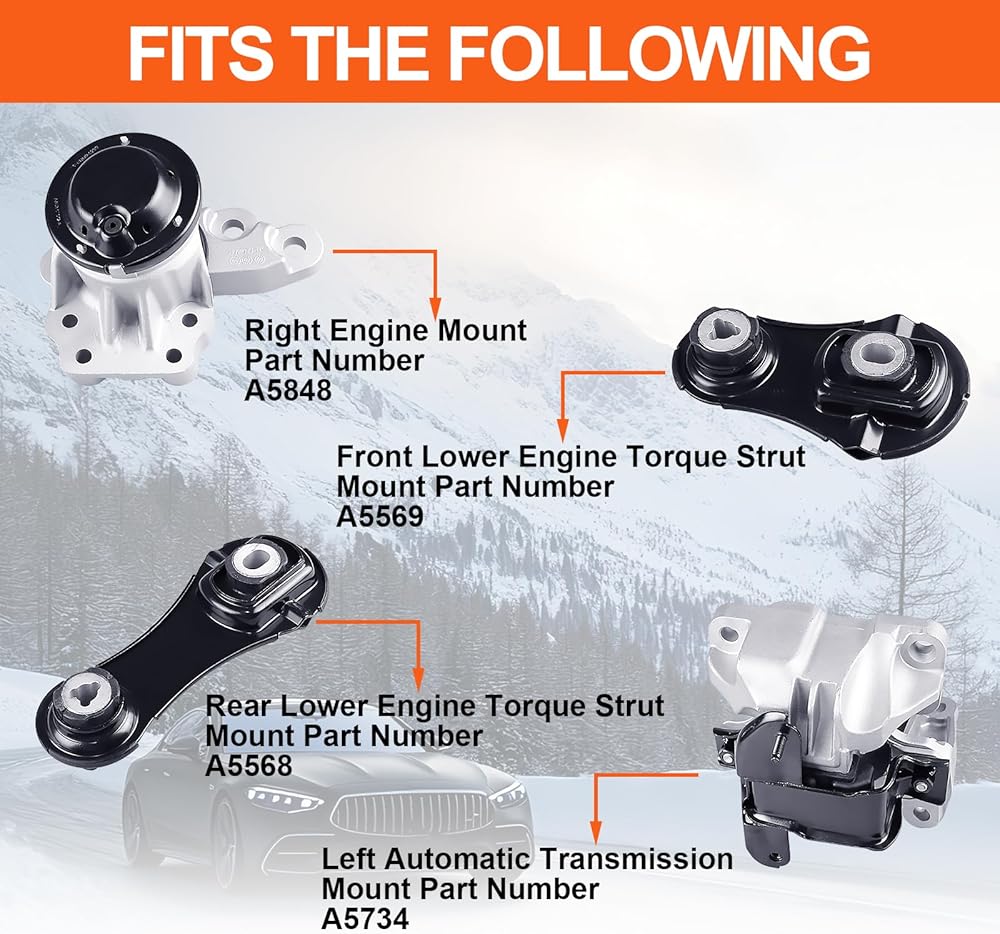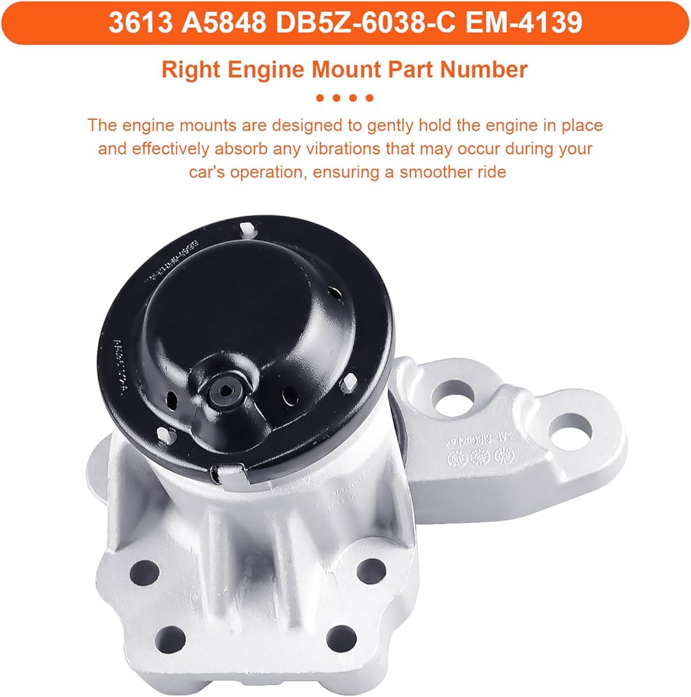 تركيب السيارة: حامل محرك المحرك متوافق مع Ford Explorer 2016-2019 V6 3.5L، Ford Police Intercept أو Utility 2016-2019 V6 3.5L، بديل لـ A5848 A5569 A5568 A5734