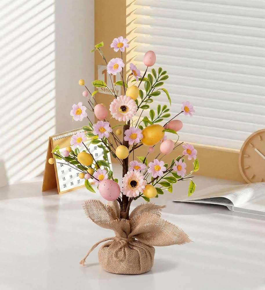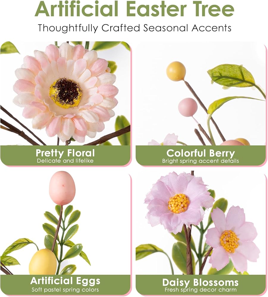 زينة عيد الفصح بأجواء الربيع الفورية: أضف سحرًا موسميًا ناعمًا إلى منزلك مع شجرة بيض عيد الفصح المضيئة مقاس 18 بوصة. مزينة ببيض الباستيل والأقحوانات والمساحات الخضراء، مما يخلق قطعة مركزية دافئة واحتفالية للطاولات أو الرفوف أو الرفوف خلال تجمعات عيد الفصح والربيع.