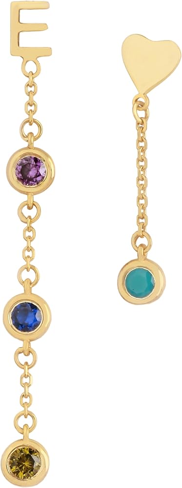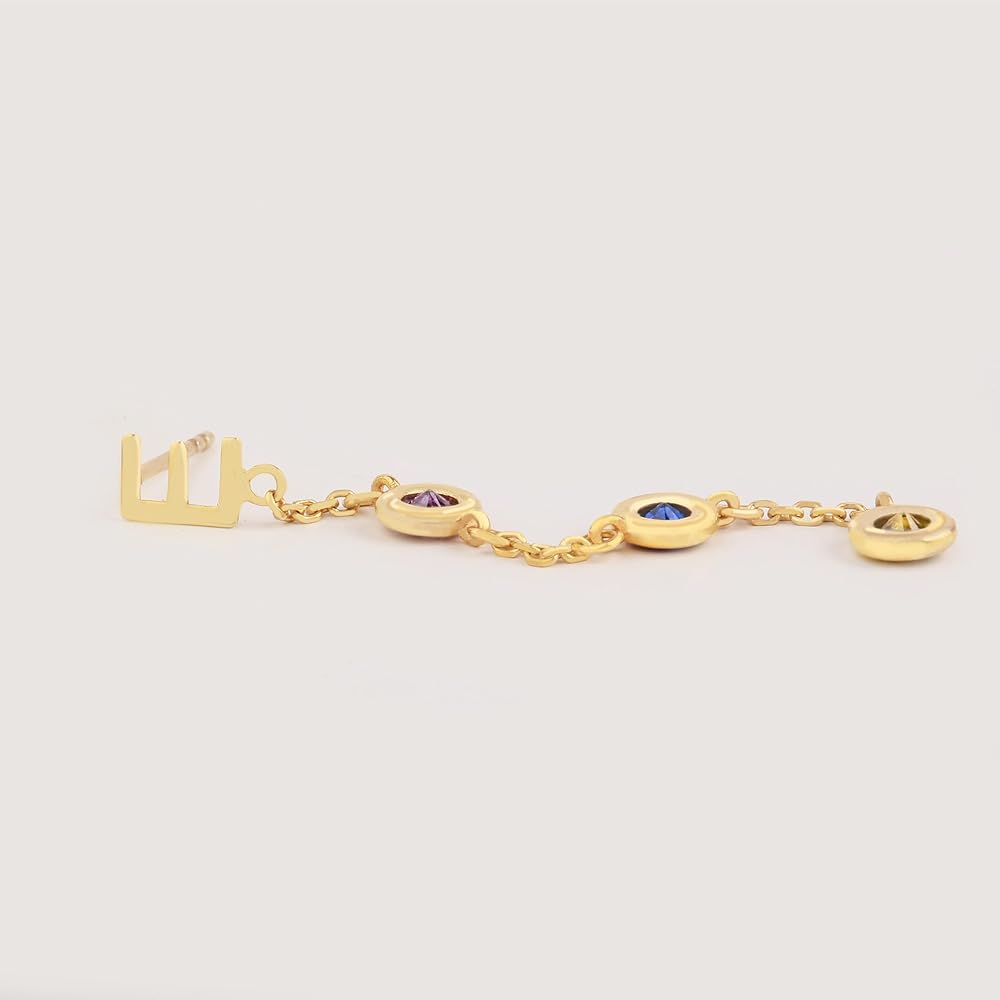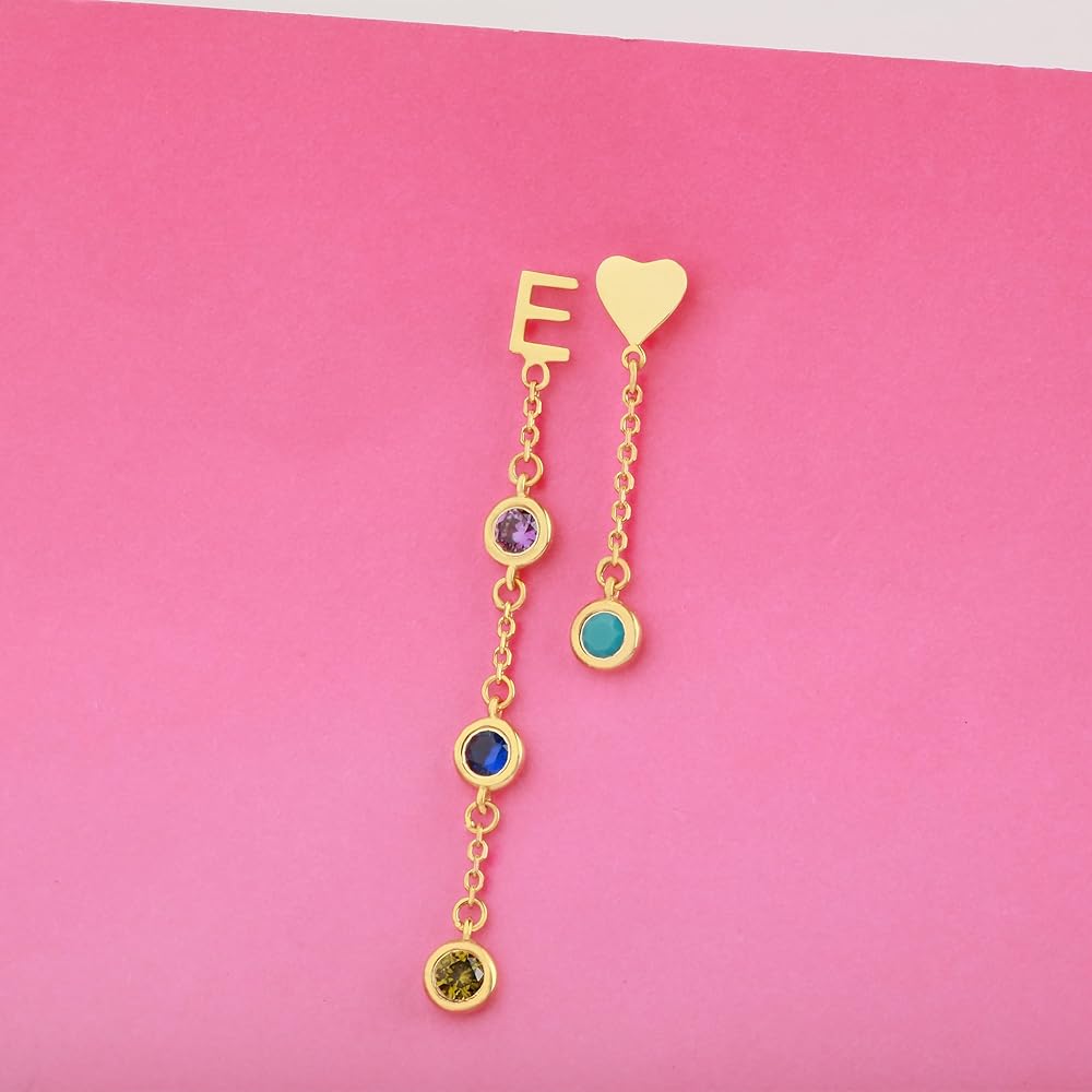 Personalized Perfection: Express yourself with these stunning letter stud earrings adorned with dangling birthstones.