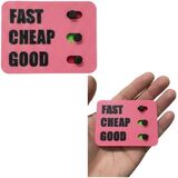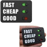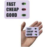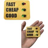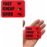 INTERACTIVE DECISION TOOL: "All functions are working." Clever desk toy featuring the classic project management triangle - Fast, Cheap, Good - where you can only pick two options using sliding markers