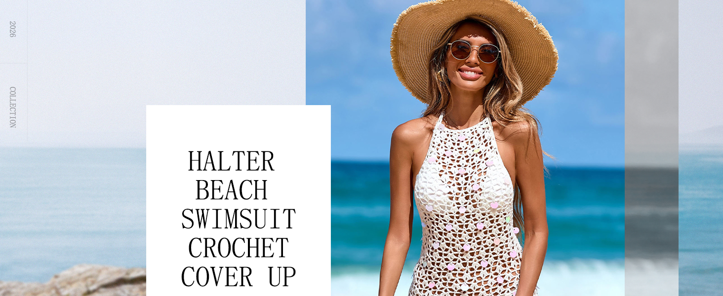 Style:Halter neck,sequin decorated,crochet,mini dress,bikini coverups,slim fit shows your body curves and keeping you cool in summer weather.