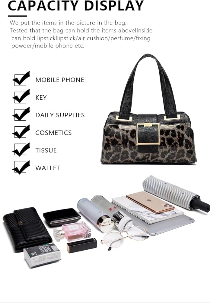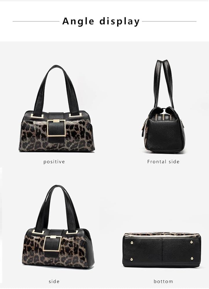 Premium Material & Unique Design Made of top - layer cowhide, this handbag is soft, durable, and has a high - end texture. The eye - catching leopard - print pattern, matched with sleek black leather and elegant gold hardware, creates a fashionable statement. It's not just a bag but a style icon that can elevate any outfit, whether for work, shopping, or a night out.