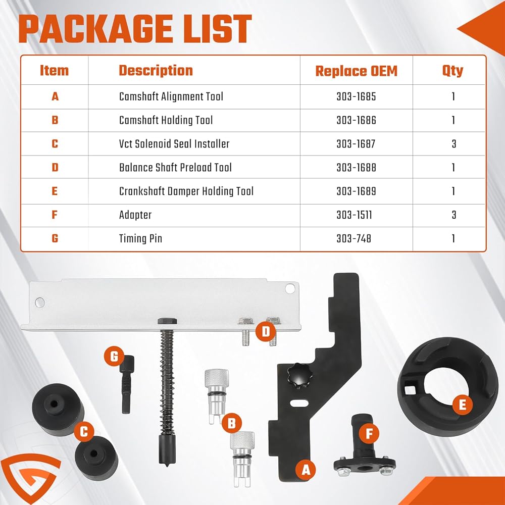 عمود الحدبات عقد محاذاة توقيت عدة العمود المرفقي المثبط حامل التوازن رمح التحميل المسبق أداة VCT الملف اللولبي ختم المثبت متوافق مع فورد 2.0 2.3 303-1551 303-1685 303-1686 303-1687 303-1688 303-1689