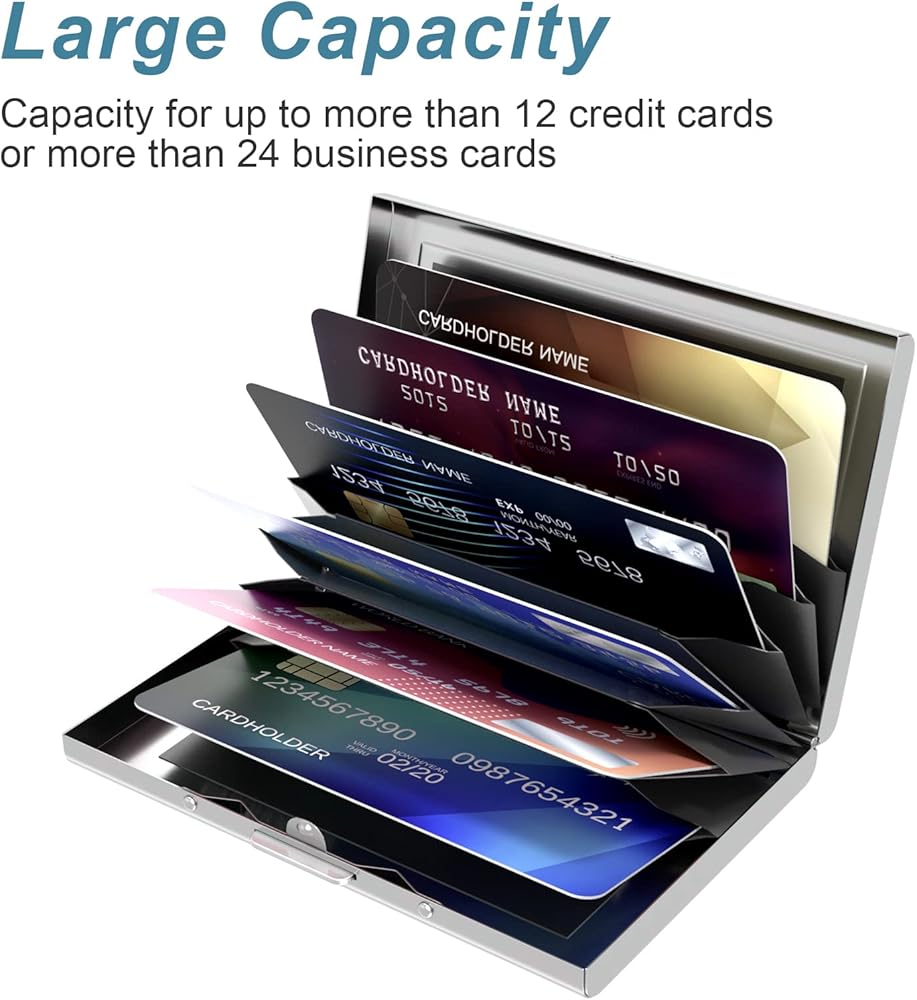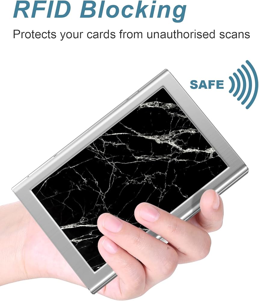 غلاف معدني مخصص لحجب RFID مصمم لحماية معلوماتك الشخصية على البطاقات من المسح غير المصرح به، ويحافظ على معلوماتك الحيوية في بطاقات RFID من السرقة، كما يتم حماية بطاقات الخصم البنكي والهوية وبطاقات الصراف الآلي دائمًا.