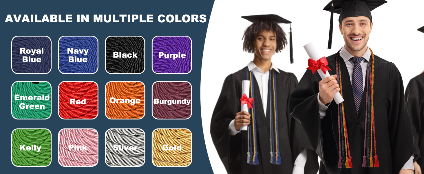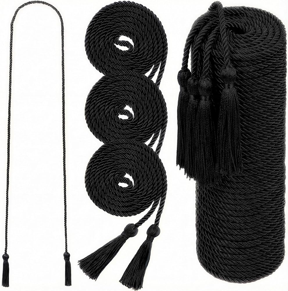 جودة ممتازة وتصميم أصلي: يبلغ طول كل سلك 68 بوصة (من الطرف إلى الطرف)، مصنوع من نسيج بوليستر مجدول عالي الجودة للحصول على مظهر كلاسيكي وأنيق. تضمن المادة المتينة أن تبدو أسلاكك رائعة طوال الحفل وتظل بمثابة تذكار دائم للإنجاز.
