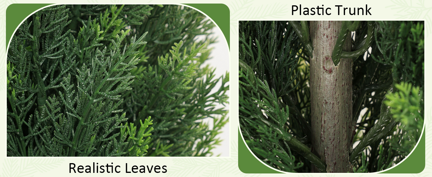 🛠 الإعداد السريع والتشكيل السهل: التجميع سهل - ما عليك سوى إزالة الغطاء الواقي الأخضر وتوصيل الصناديق. يعد الحصول على مظهر نابض بالحياة أمرًا سهلاً تمامًا: أمسك قاعدة كل فرع بلطف بثبات، ثم قم بثني القسم الأوسط إلى الداخل برفق. تضيف هذه اللمسة البسيطة واللطيفة حجمًا طبيعيًا وشخصية إلى الجزء العلوي من خشب الأرز الصناعي، في حين أن أوراق الشجر المتينة لدينا مصنوعة لمقاومة التساقط.