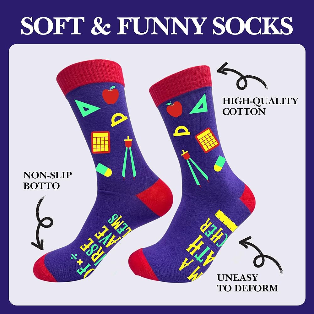 Funny Design: Socks featuring teacher-themed patterns and humorous phrases, our socks are fade-resistant and machine washable for long-lasting use.
