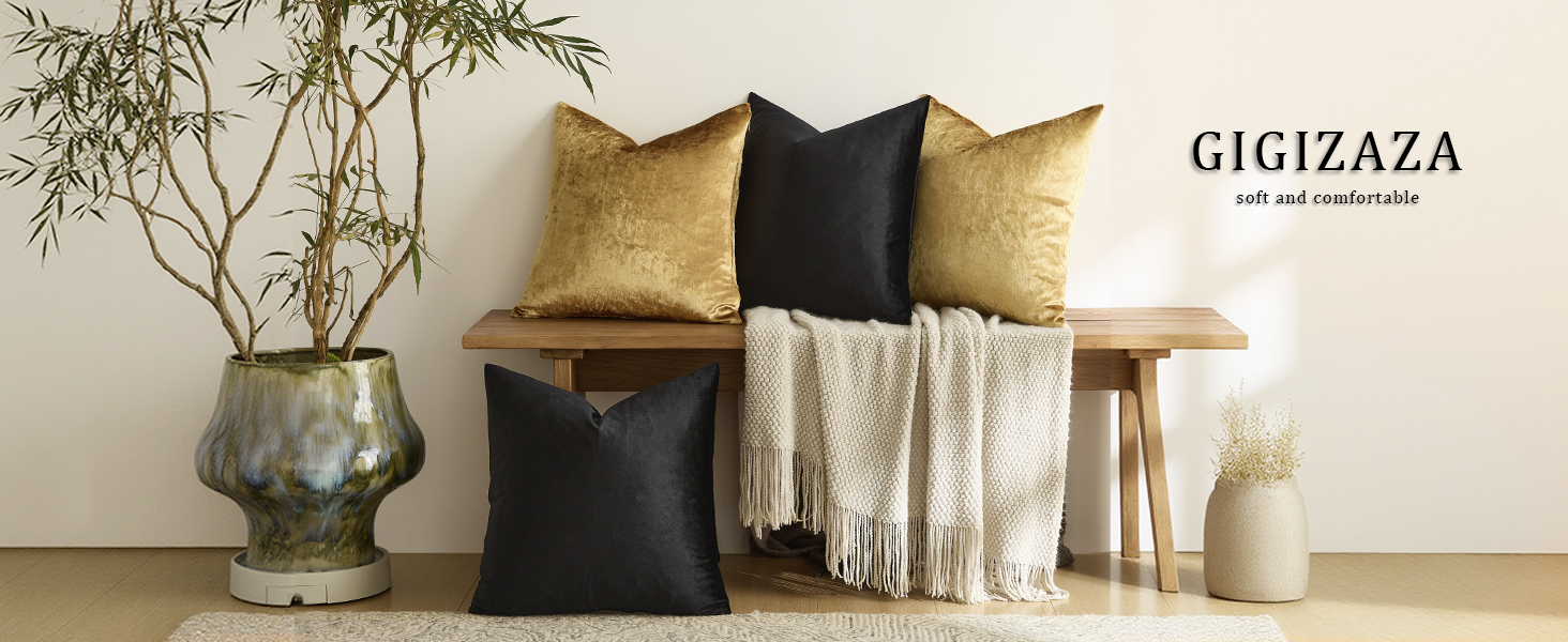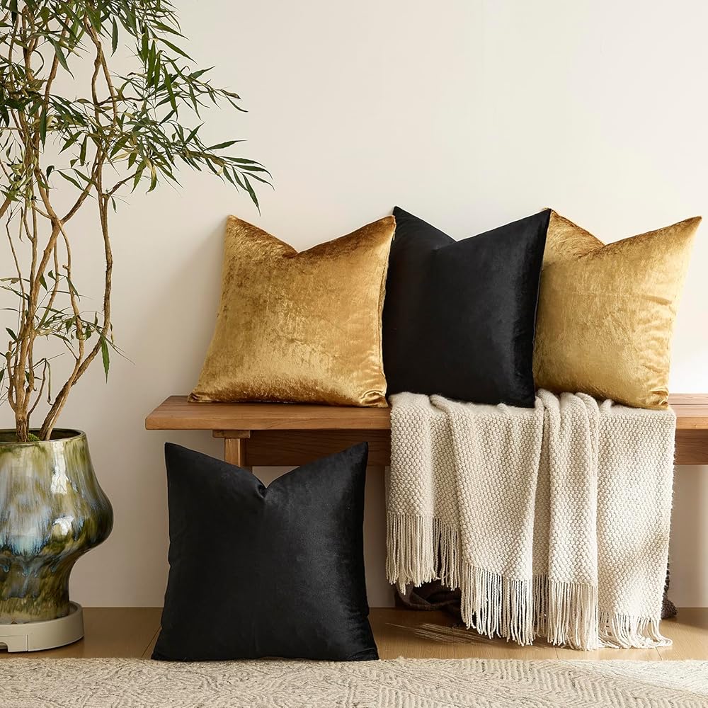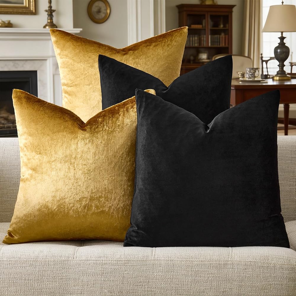 تصميم فريد: لون ذهبي وأسود، مقاس 18 × 18 بوصة / 45 × 45 سم، يناسب بشكل أفضل حشوات 20 × 20 بوصة / 50 × 50 سم. (أكثر نعومة وراحة)