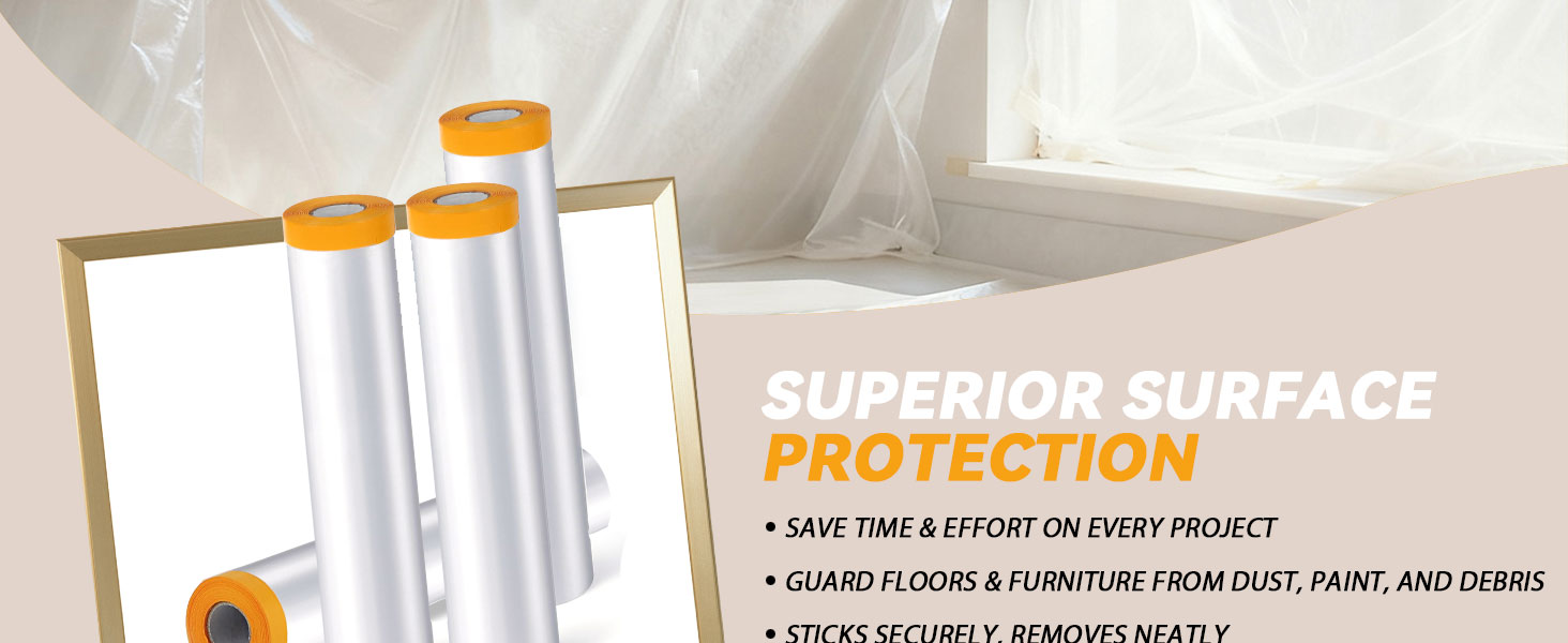 حماية السطح: توفر طبقة لفافات الغبار المقاومة للماء درعًا موثوقًا به ضد الغبار والطلاء والماء والبقع أثناء تجديد المنزل أو مشاريع الطلاء أو حتى التخزين طويل الأمد. حافظ على أرضياتك وأثاثك وسياراتك وممتلكاتك في حالة جيدة باستخدام هذا الفيلم متعدد الأغراض المُلصق مسبقًا