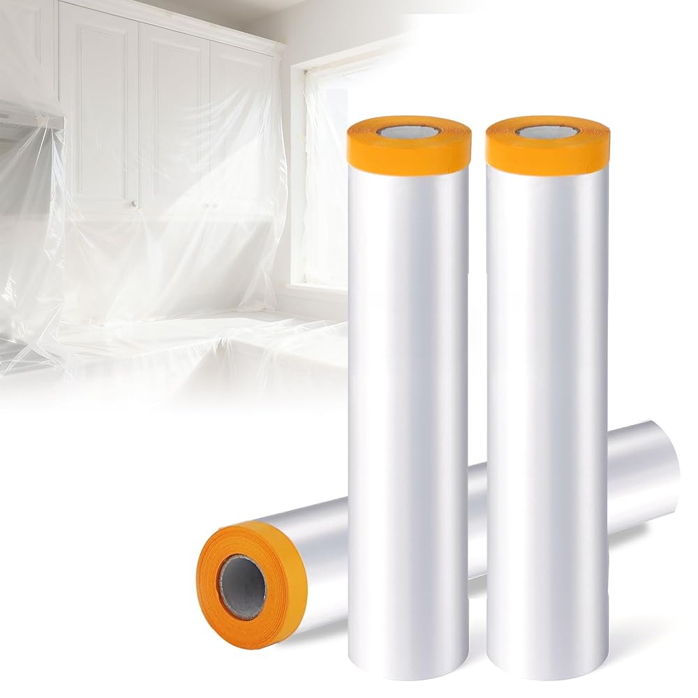 مادة ممتازة: تأكد من عمل طلاء لا تشوبه شائبة من خلال فيلم الإخفاء المُلصق مسبقًا. الأغطية البلاستيكية المغلفة مسبقًا مصنوعة من مادة البولي إيثيلين، وهي مقاومة للتمزق والسوائل والتسرب. تلتصق الحافة الملتصقة بالكهرباء الساكنة بسلاسة دون بقايا، مما يوفر الحماية القصوى لسيارتك وأثاثك ضد الطلاء والغبار