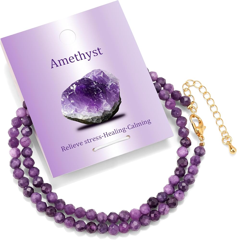 هدية مجوهرات من الحجر الطبيعي: قلادات من الخرز الكريستالي مصنوعة يدويًا بإتقان، كل حجر كريم فريد من نوعه. يوصى بها بشدة للحصول على مفاجأة عاطفية لأي شخص في عيد الميلاد وعيد الشكر وعيد الميلاد وعيد الحب وعيد الأم والمزيد.