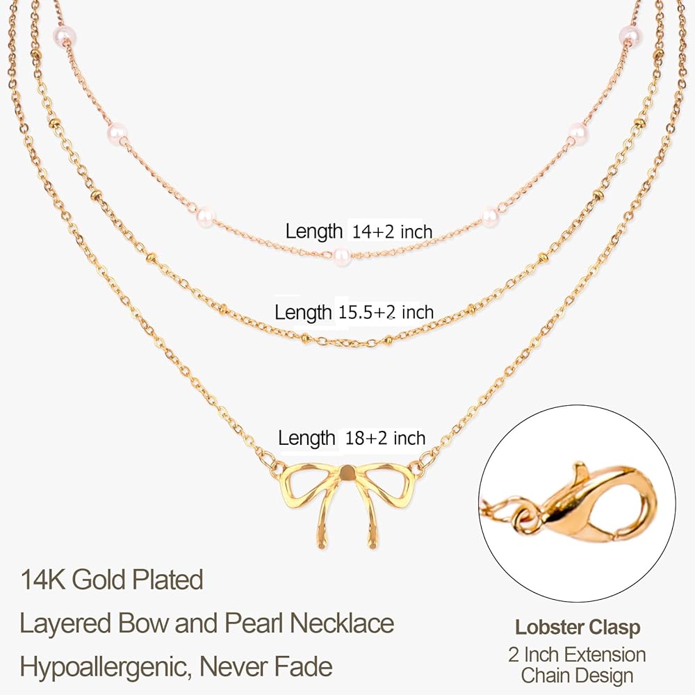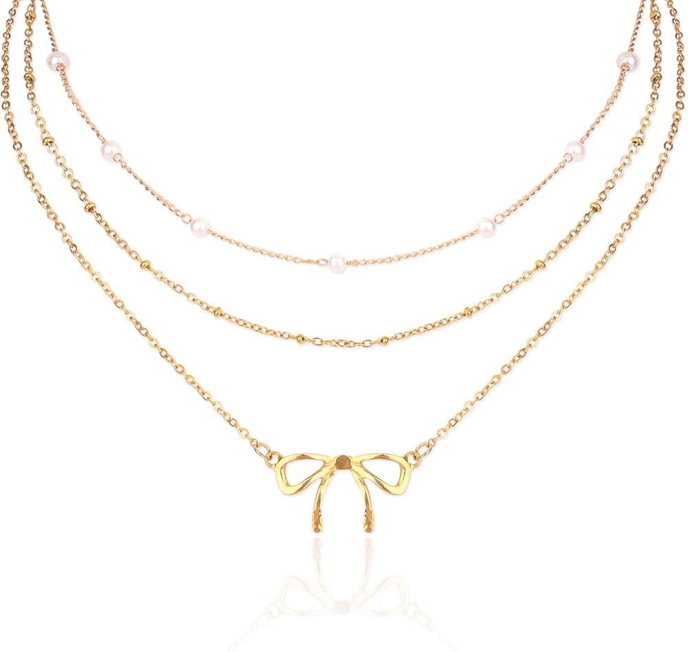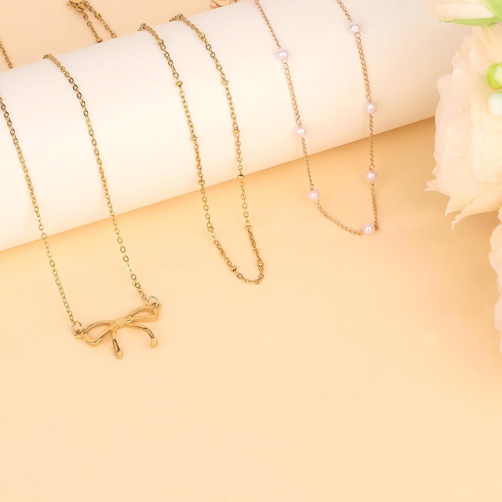 • Layered Necklaces for Women: This set includes 1 gold bow necklace, 1 gold chain necklace and 1 pearl choker. Allowing you to stack them as trendy layered necklaces or wear them separately for different looks. Giving you multiple styles from one affordable set