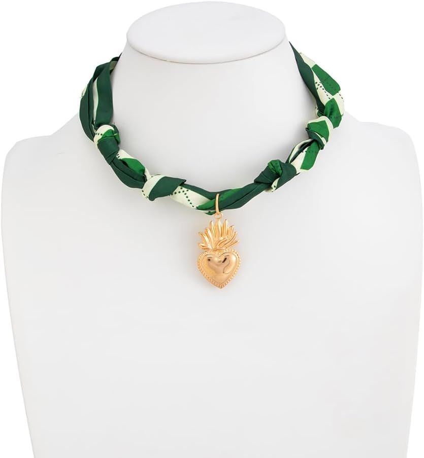 Unique Design:These scarf necklace feature vintage chunky geometric heart charm with soft scarf chain details, the bold heart pendant matches the boho bandana choker structure, the shiny gold finish glints softly and catches eyes fast, making these necklaces a chic standout piece